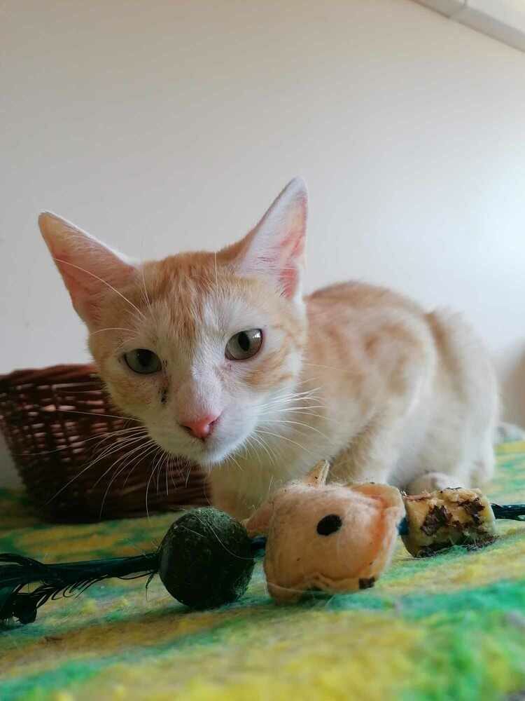 Czwarty braciszek, wśród pięknego biszkoptowego rodzeństwa uratowanego z działek. Koty giną tam w paszczach lisów, stąd ulegamy prośbom karmiciela, aby brać do nas te które udaje się oswoić. Macchiato jest jeszcze bardzo nieśmiały, ale zdarza się mu już mruczeć i nadstawiać do głaskania. Będą z niego koty 🙂