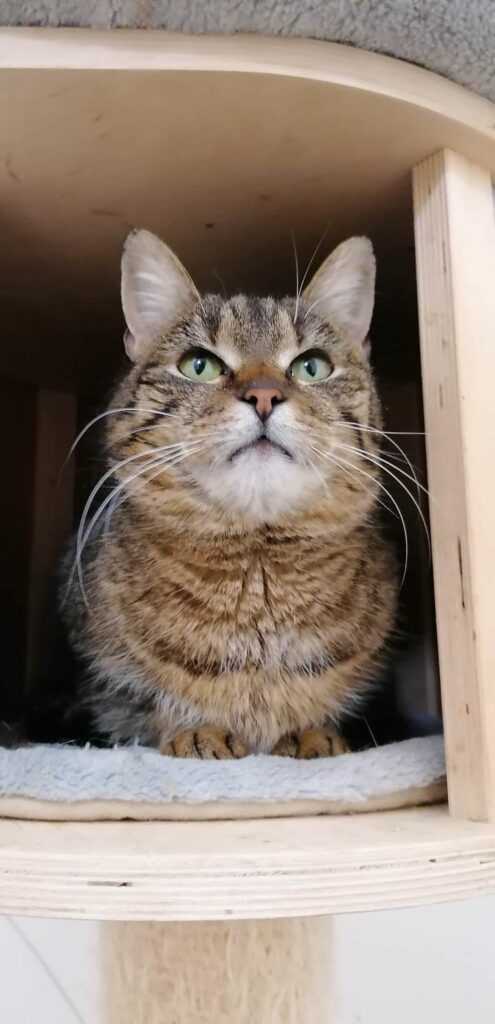 Dla przypomnienia: kotka została zabrana z działek, gdzie spędziła kilka lat. Wcześniej została tam porzucona przez ludzi, gdyż było oczywiste, że to typowo domowa, oswojona kocia dama.