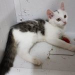 Ten oto kocurek znalazł się sam w środku lasu i bardzo głośno nawoływał mamę. Miał szczęście, że został zauważony przez rowerzystów, którzy go zabezpieczyli. Kocurek był wychudzony i miał biegunkę, ale już wrócił do sił po leczeniu w domu tymczasowym. Został zaszczepiony.