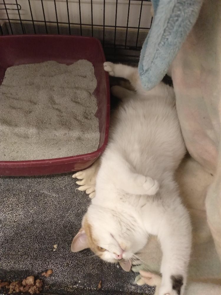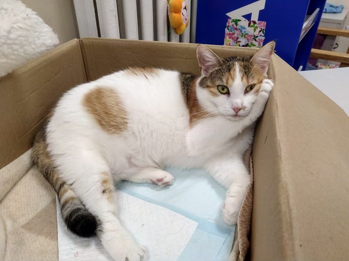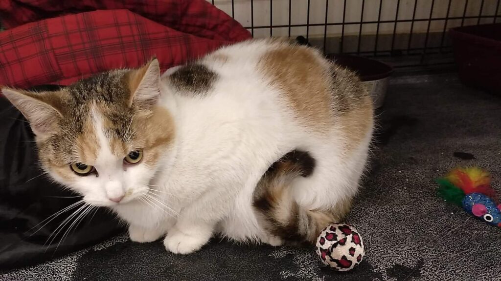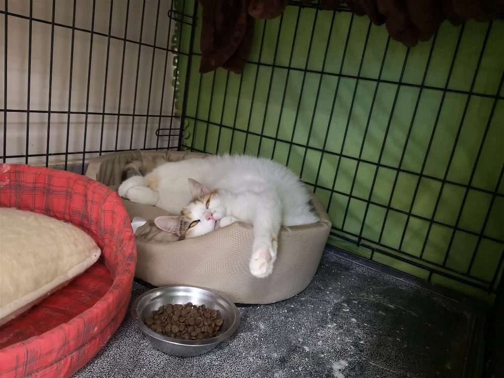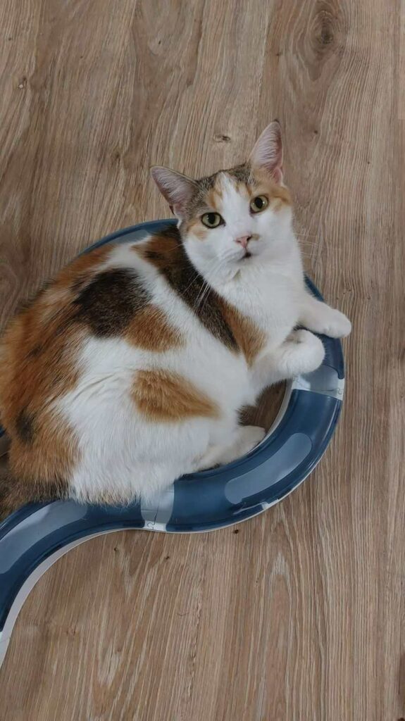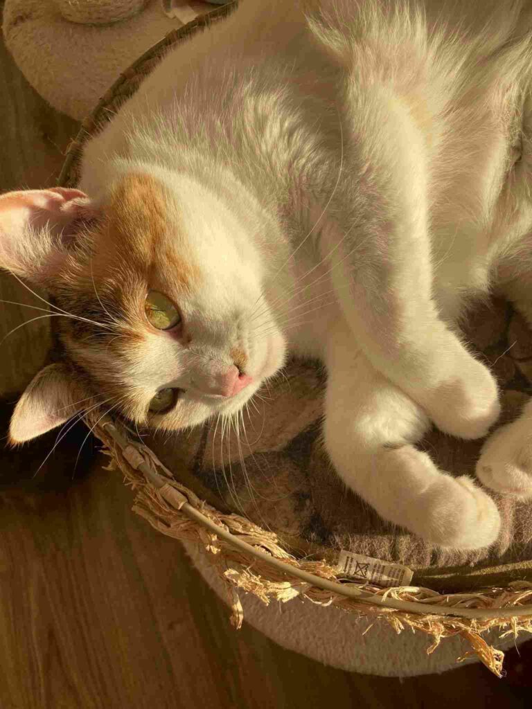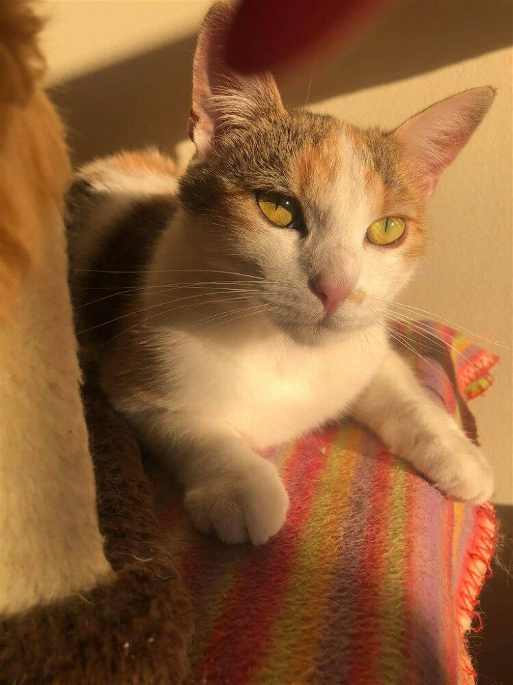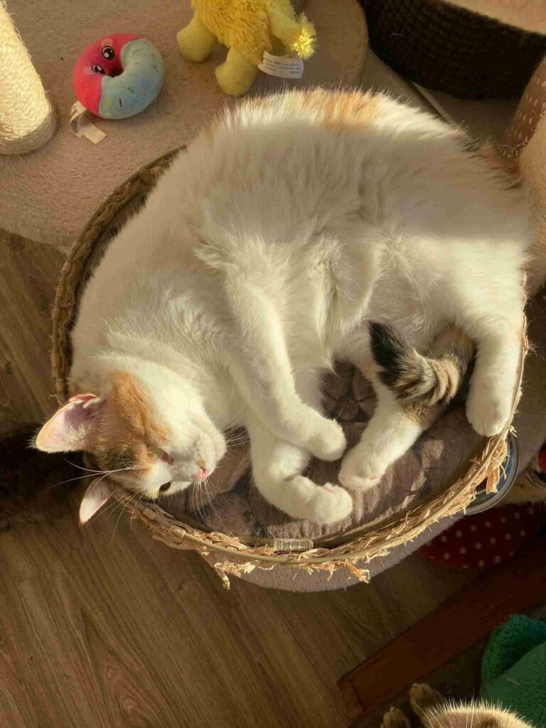Kotka została znaleziona na czyjejś posesji wraz z trójką rodzeństwa, prawdopodobnie przyszły od kotki sąsiadów pozostawione samopas. Uwielbia głaskanie. mruczy, ugniata, przychodzi do człowieka po więcej, czasem jest bojaźliwa. Uwielbia ganiać za piłeczkami. Do oddania z kocim towarzystwem.