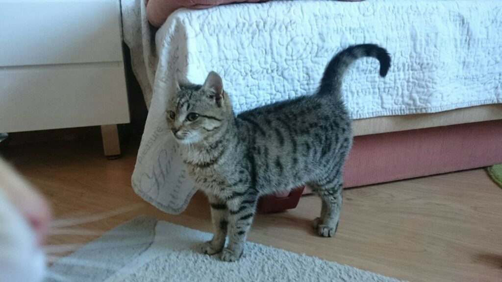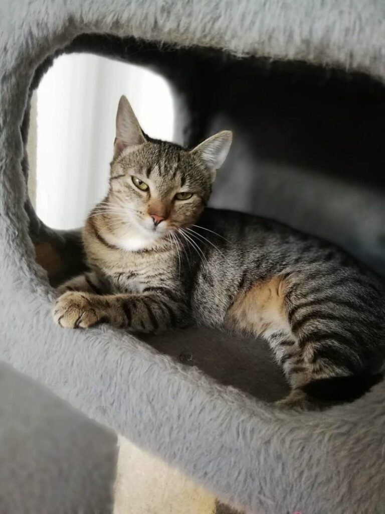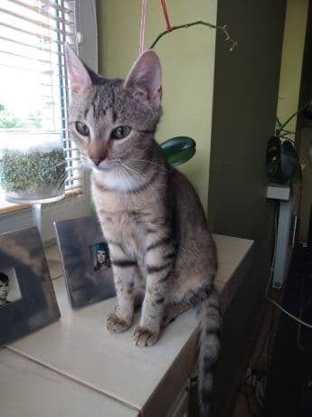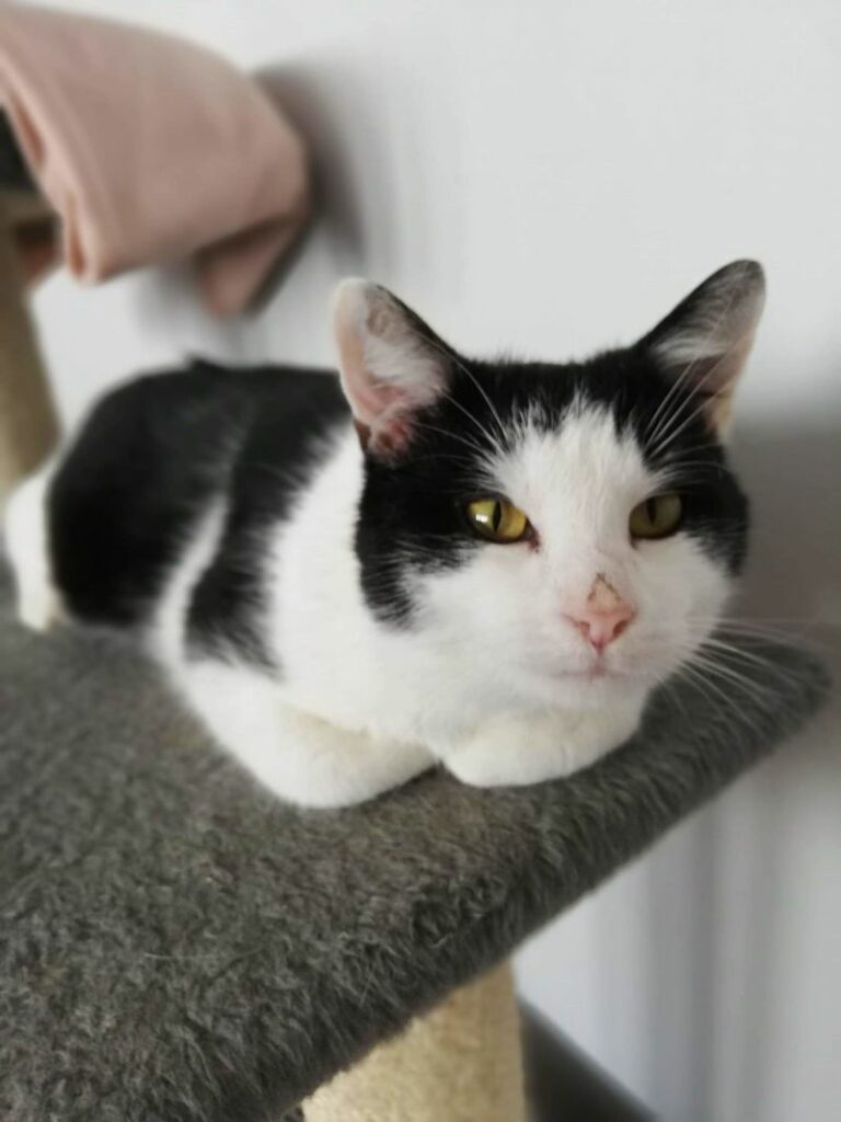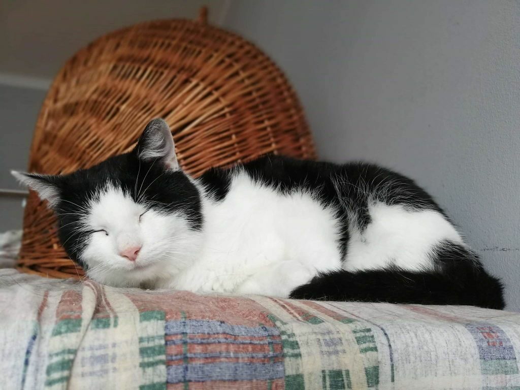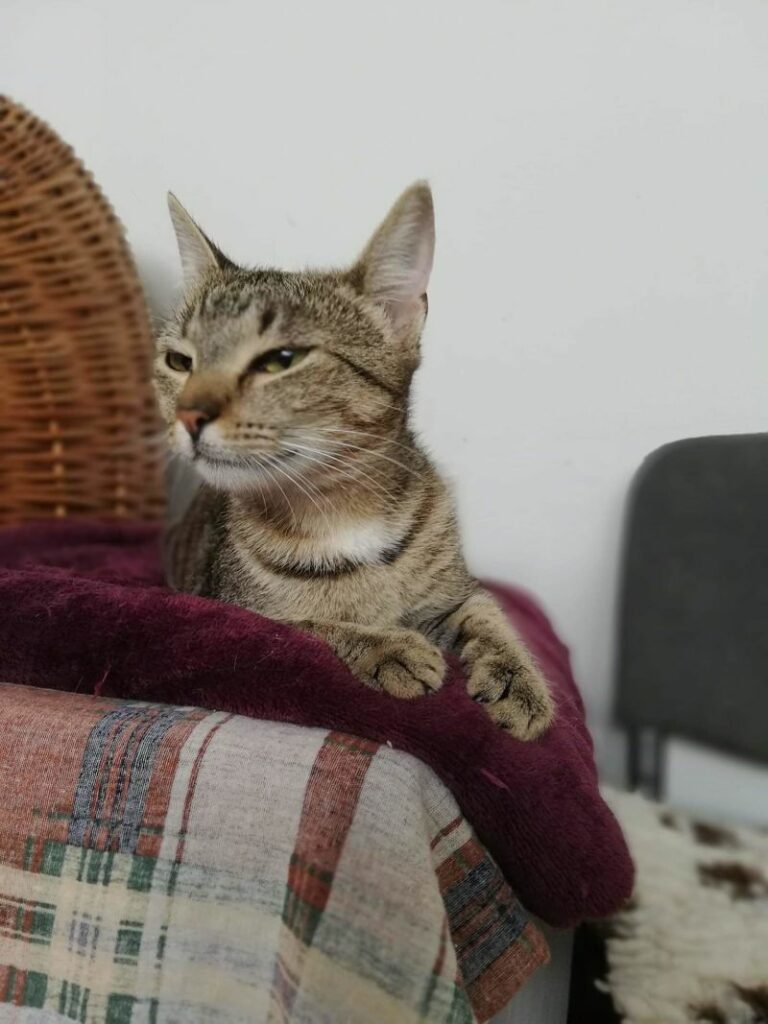 Cudowny miziak, który kiedyś bał się podejść do ludzi. Nie można się od niego odpędzić, pomaga przy wszystkim. Kocha ludzi i inne koty.