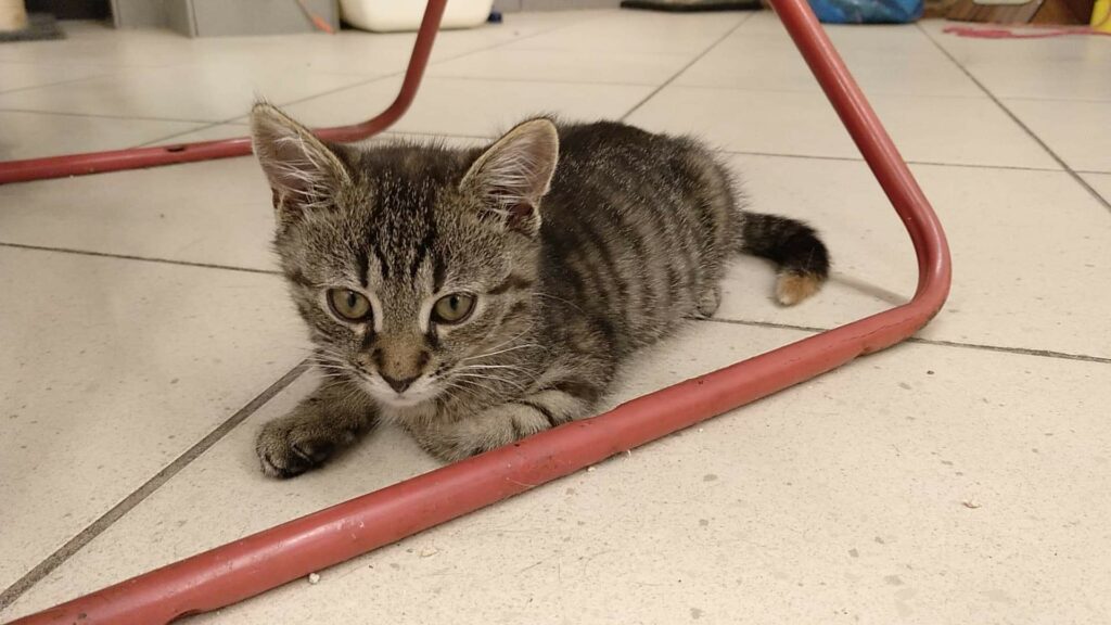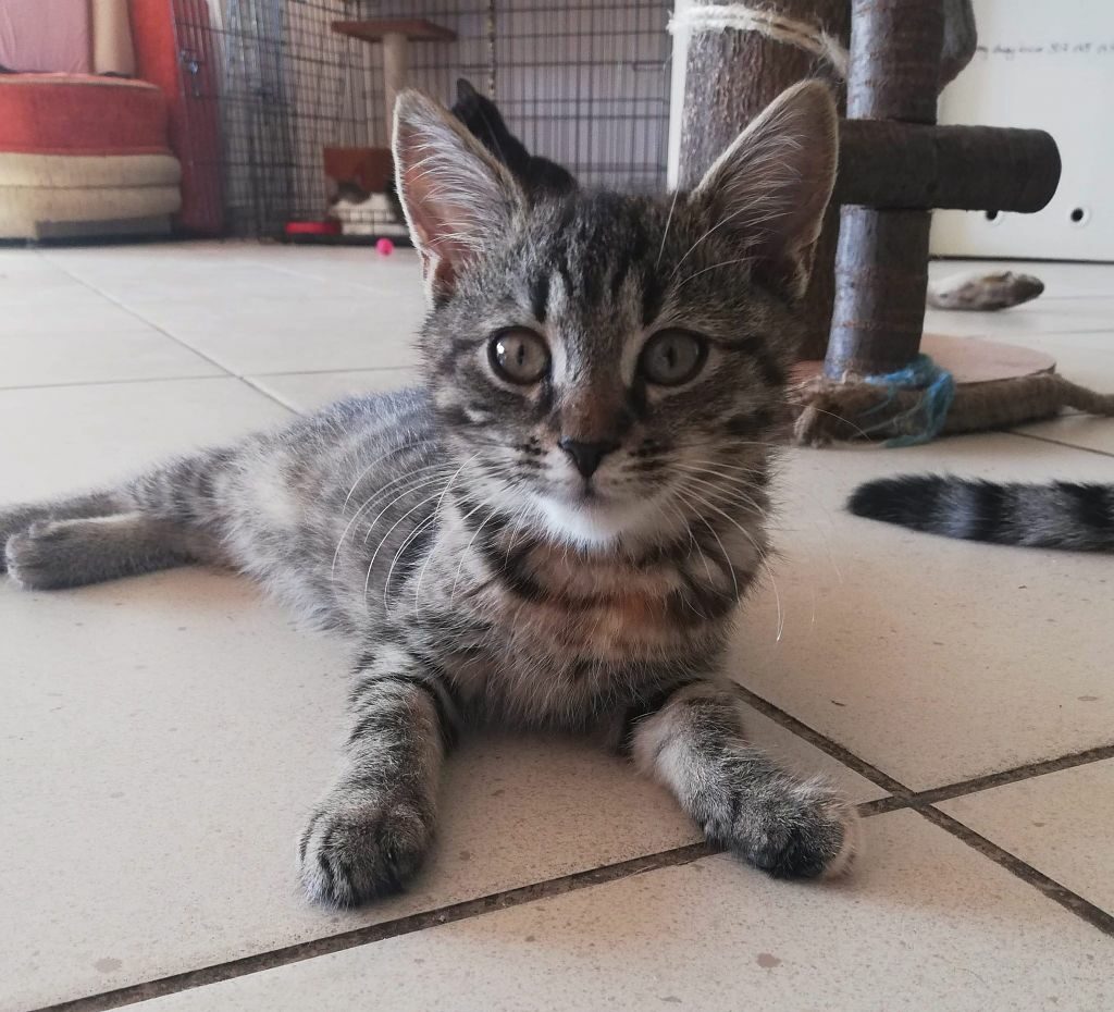 Edna to cudowny kociak, który biega za piłeczką i sznurkami. Przyszła z siostrą Tarą, która znalazła dom. Obie mają charakterystyczną rudą końcówkę ogonka. Do oddania z innym kociakiem