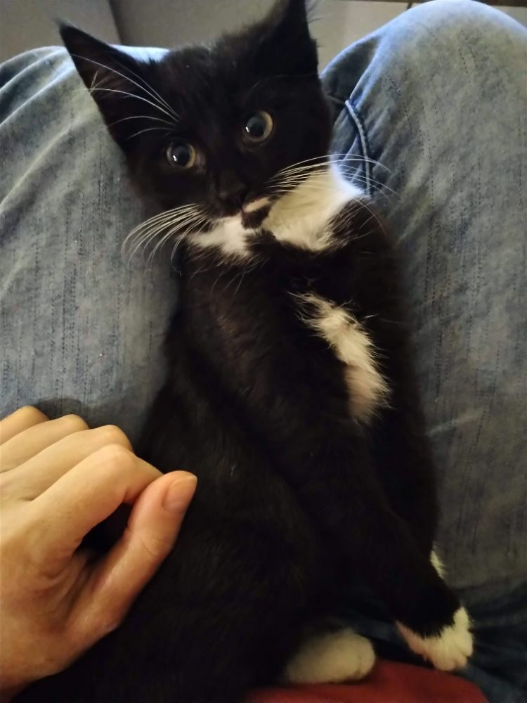 W szopie dwukrotnie w ostatnim roku okociła się kocica. Wcześniej były karmione, lecz ich karmicielka wyjechała za granicę, a kocia rodzinka została. Są tam trzy kotki 2-miesięczne (1 oswojony i 2 dzikie) i dwa ok 6/7 miesięczne. Część wymaga oswojenia. Starsze kociaki (biało czarne – widoczne na jednym ze zdjęć), świetnie odnajdą się domu – są bardzo przyjazne w stosunku do ludzi.