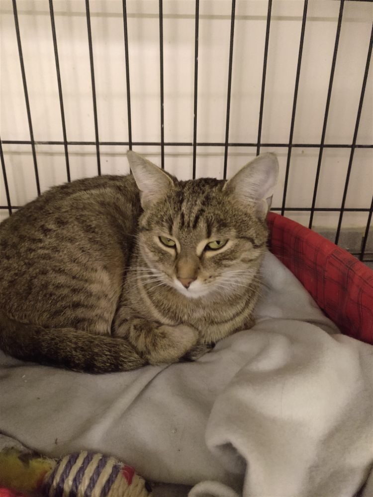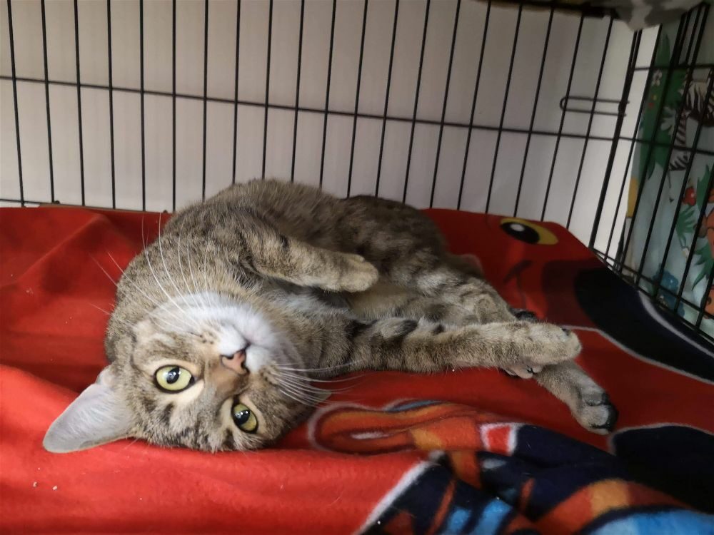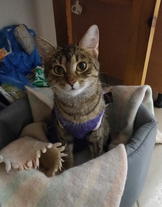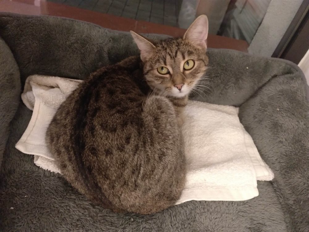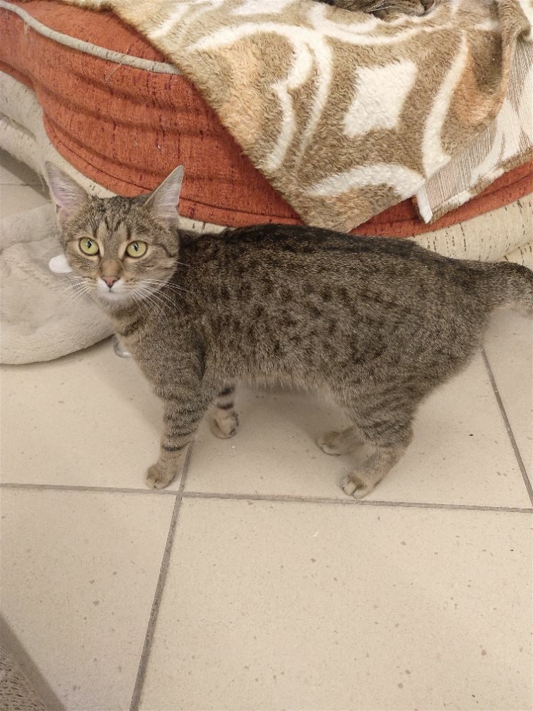 Kotka została znaleziona na osiedlu zmarznięta i przestraszona. Bardzo przyjazna do ludzi. Niesamowity przytulak. Do kotów niezbyt przyjazna.