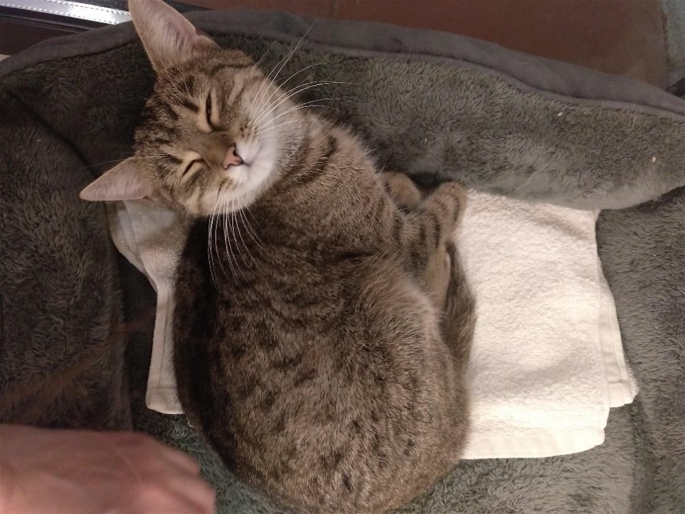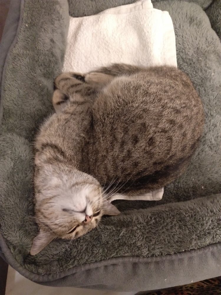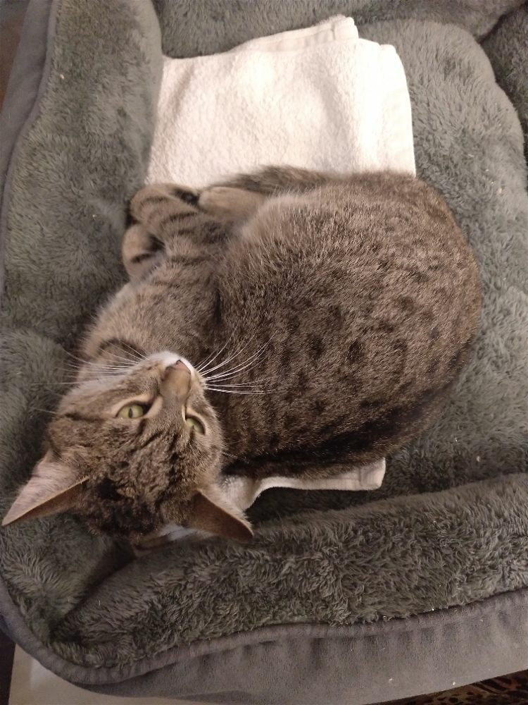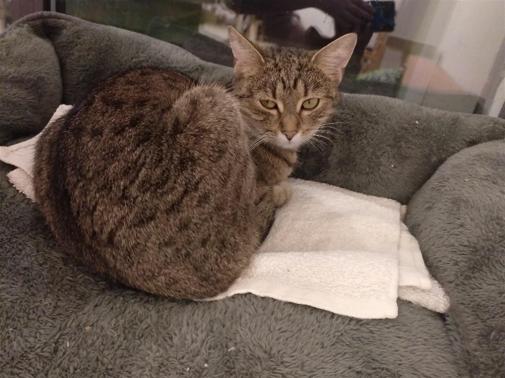 Kotka została znaleziona na osiedlu zmarznięta i przestraszona. Bardzo przyjazna do ludzi. Niesamowity przytulak. Do kotów niezbyt przyjazna.