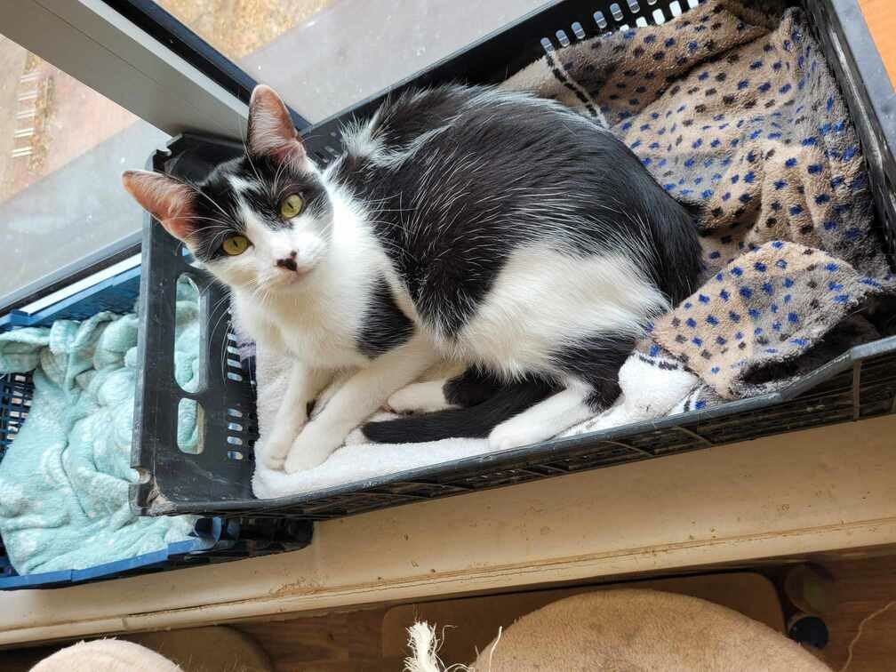 Na szczęście, nad całą sytuacją czuwała nasza wolontariuszka, która regularnie jeździła ją dokarmiać. Dopilnowała też aby kotka nie została bez schronienia na zimę.