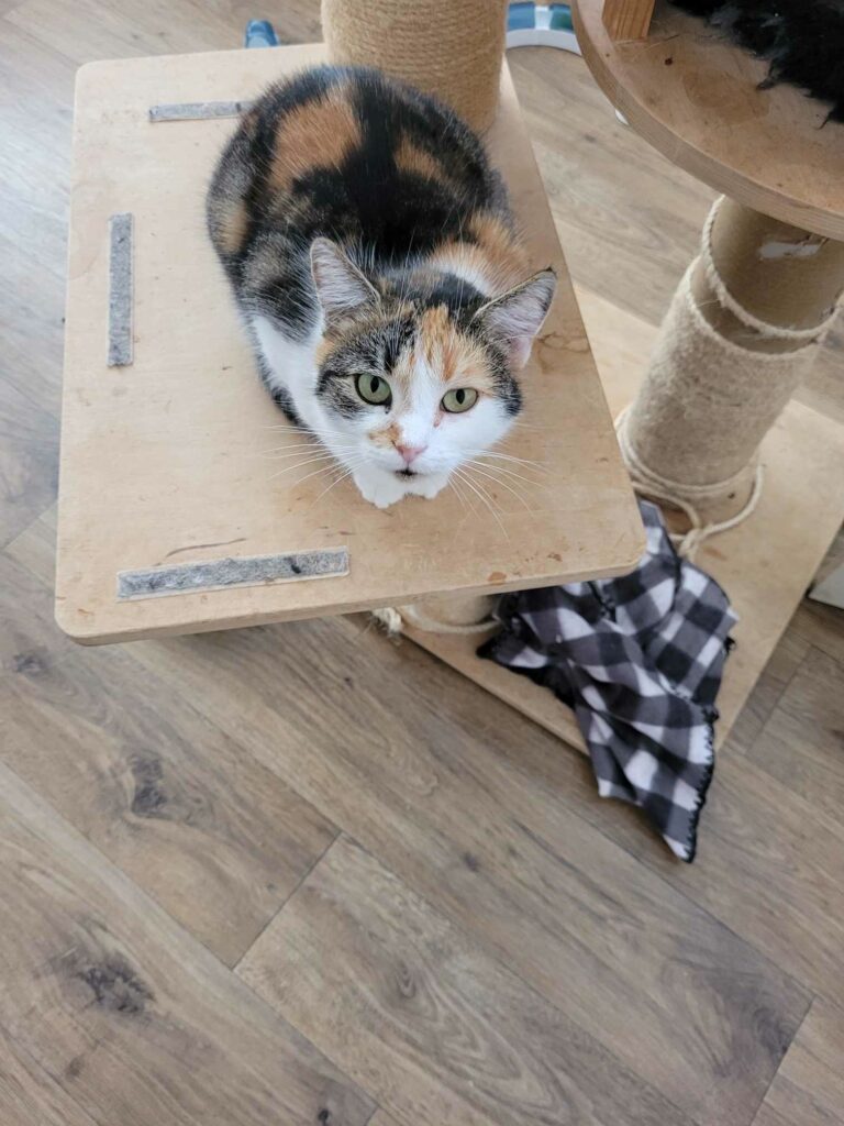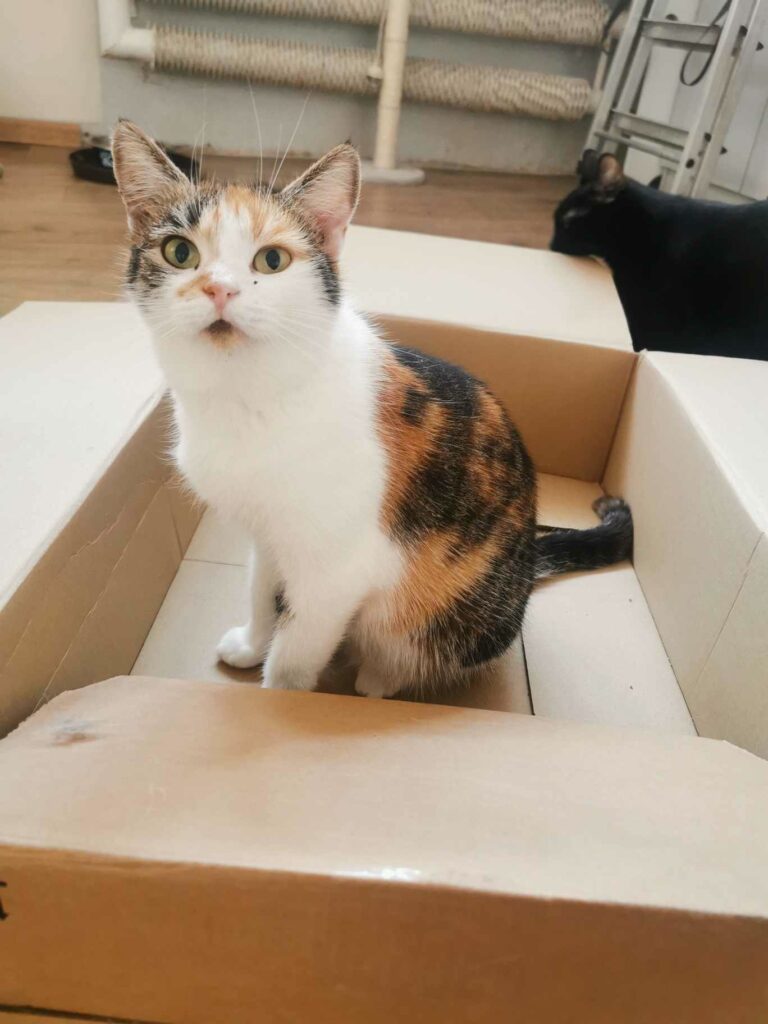 Kotka trafiła do nas z jednej z wsi pod Stalową Wolą. Bardzo długo błąkała się, szukając schronienia przed zimnem i deszczem w stodołach i opuszczonych budynkach. Jej trudne doświadczenia, sprawiły, że kotka bardzo docenia każdy dzień w kociarni i wszystko co od nas dostaje.