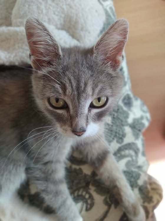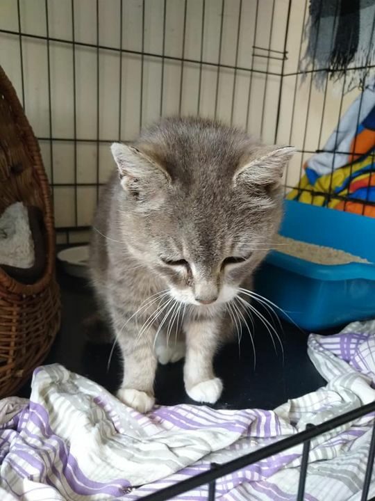 Kociak został podrzucony w pudełku pod drzwi. Tylko dzięki szczęsciu nie uciekł z pudełka pod samochody. Kociak jest niesamowitym miziakiem, uwielbia ludzi i zabawy.