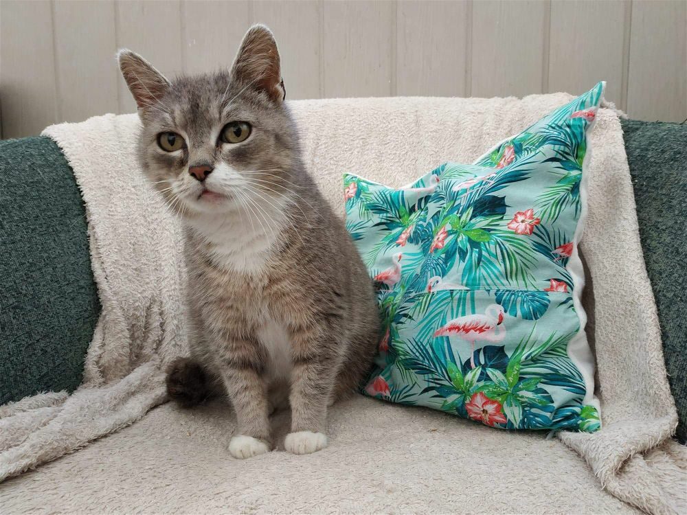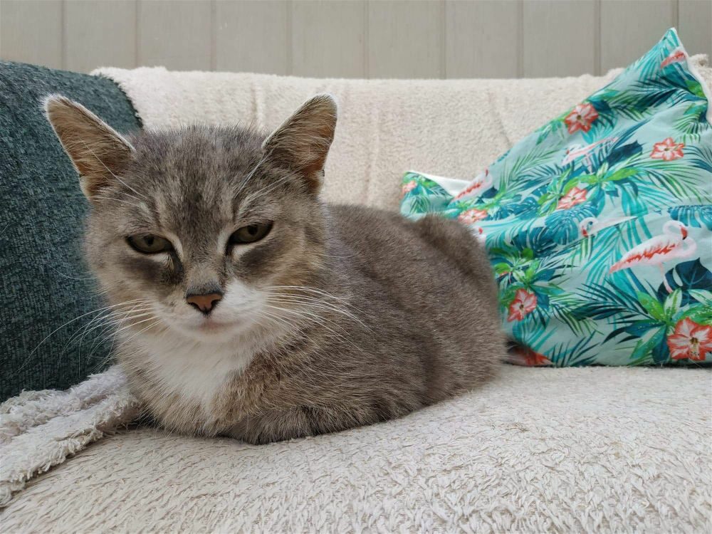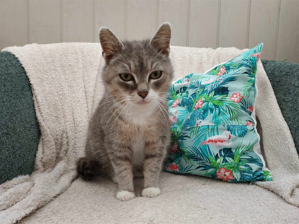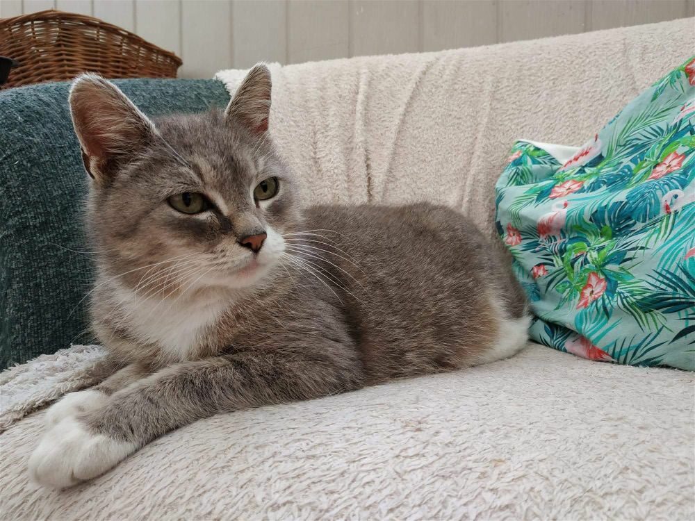 Taka śliczna kotka trafiła do nas z terenu huty, gdzie regularnie rodziła młode. Jest już przetestowana i zaszczepiona. Z charakteru – koci ideał. Jest kochana i przyjazna – na każde ludzkie zainteresowanie podrywa się na równe nogi i chce być głaskana