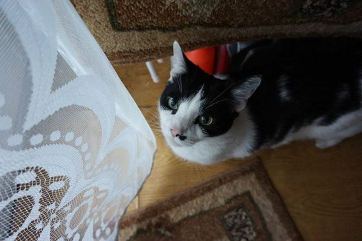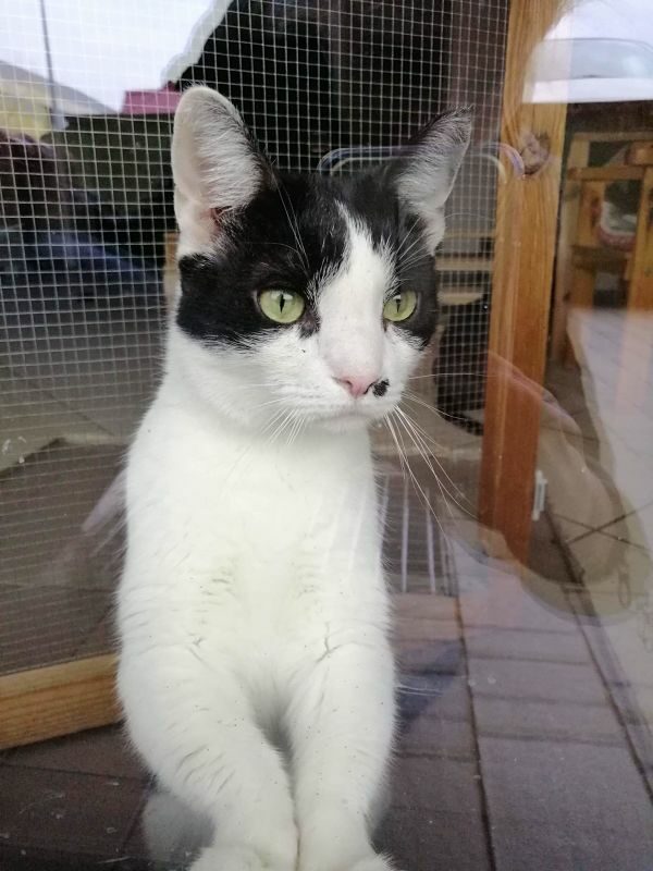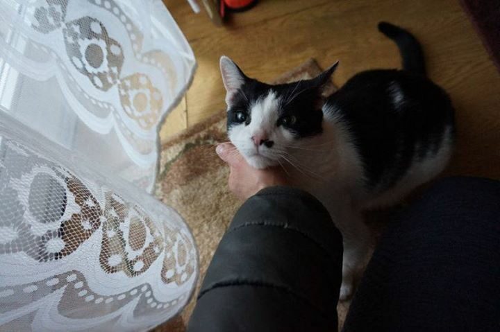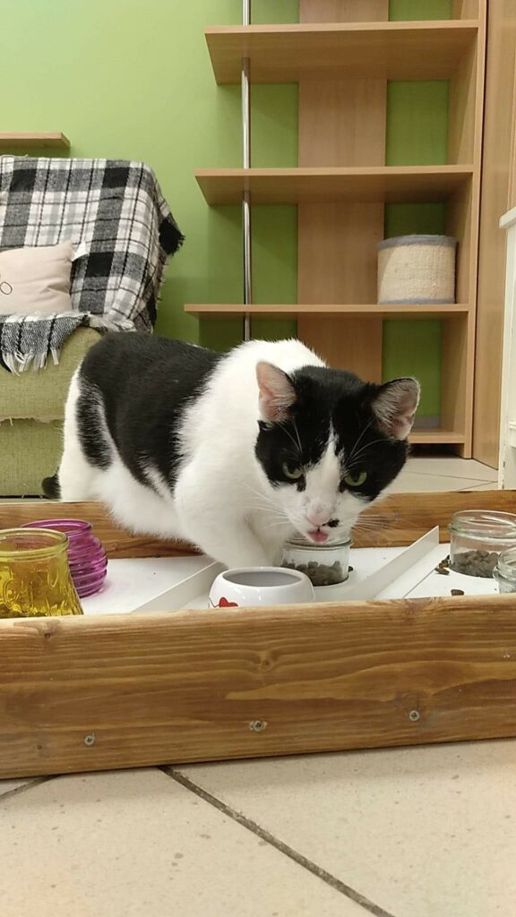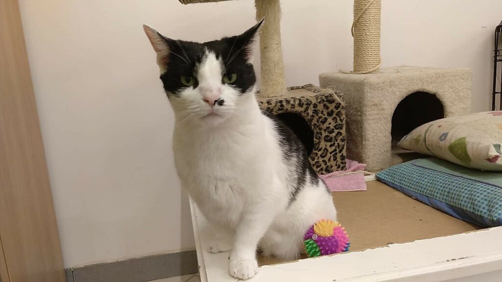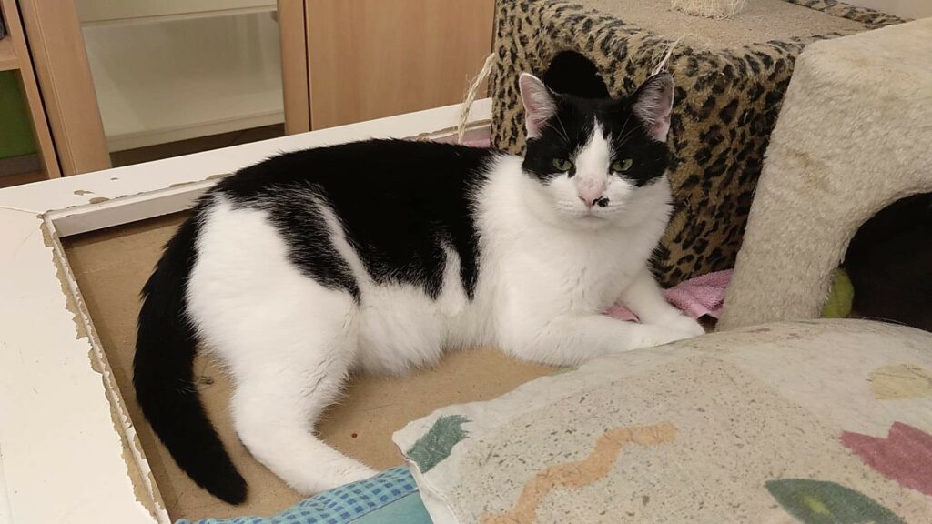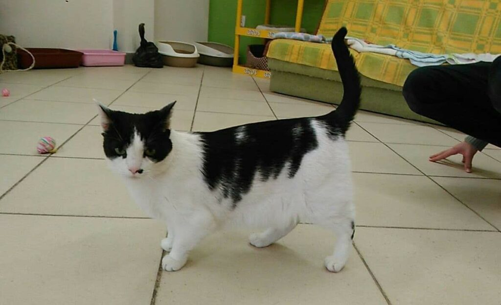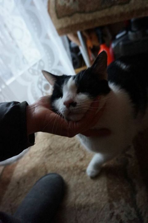 Niestety, jego opiekunka straciła mieszkanie, gdzie mogła mieszkać razem z kotem, a kocurek znów trafił do nas.