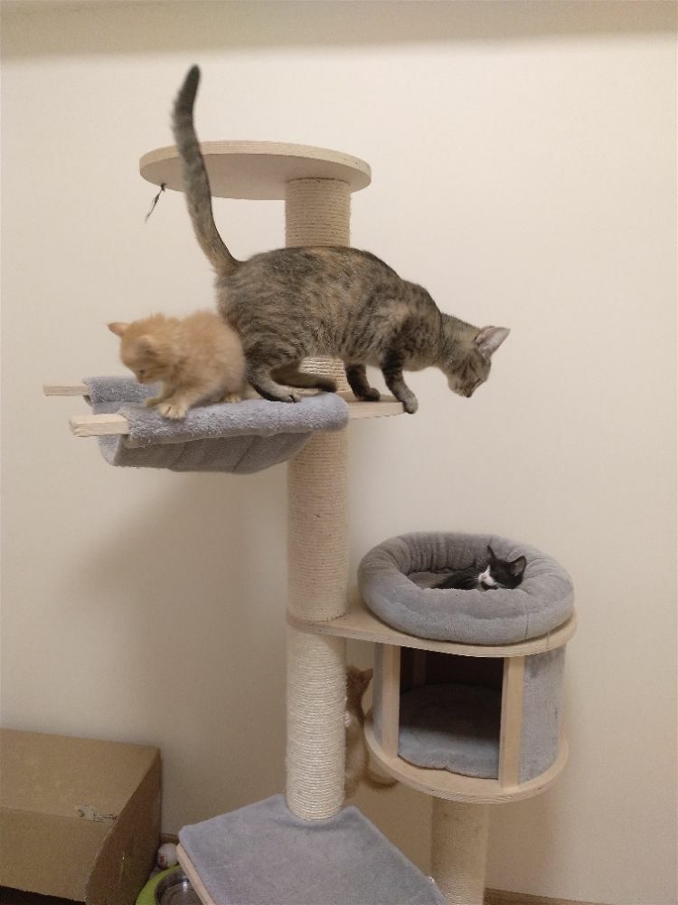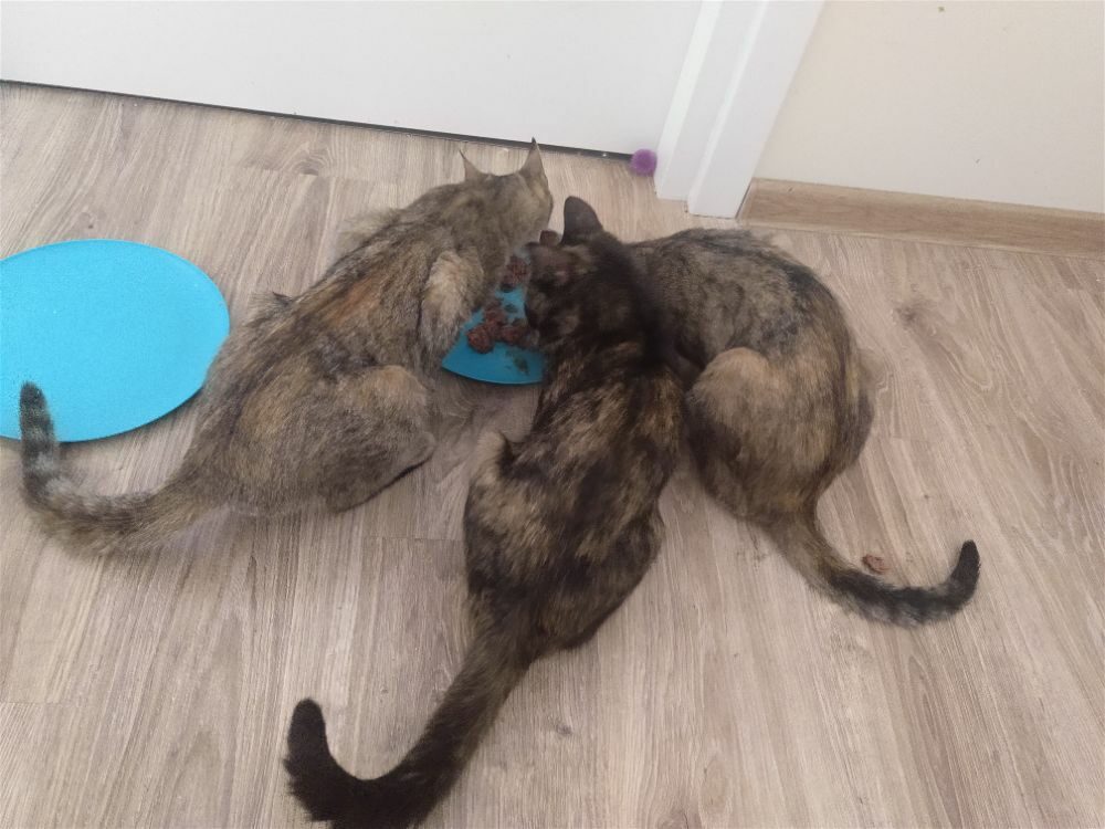 Z maluchami codziennie jesteśmy w lecznicy. Dorosłe kotki cierpią na infekcje oczu, uszu, a jedna z nich niepokoi nas ze względu na przyspieszony oddech i dziwne bólowe odruchy. Łącznie mamy z tamtego miejsca trzy kotki i pięć kociąt.