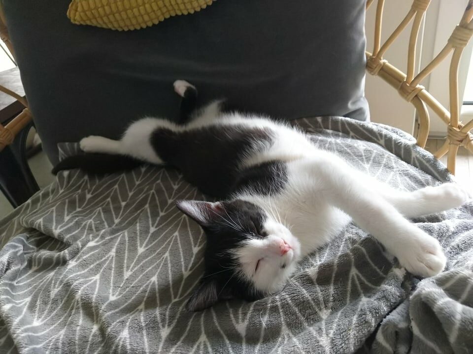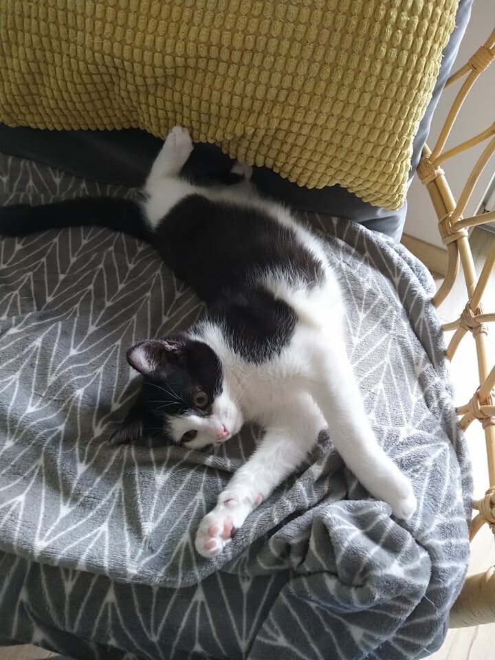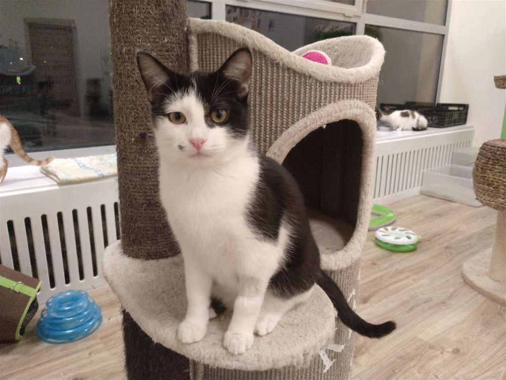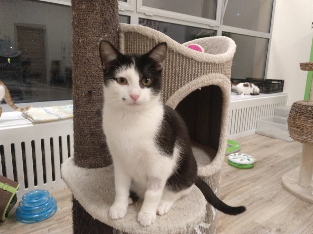 Kostek jest młodym kociakiem, który został komuś przerzucony przez ogrodzenie posesji, gdzie był jeszcze bardzo malutki. Dorastał w domu tymczasowym, w otoczeniu kociaków.