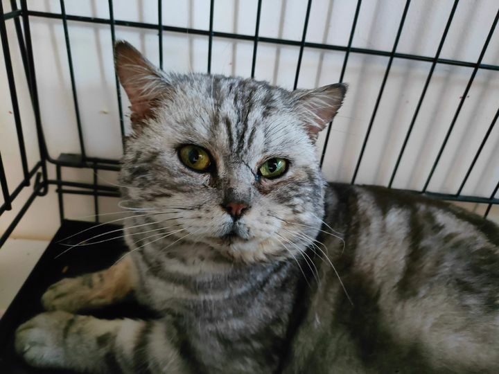 Filuś to ogromny kocur o pięknym marmurkowo – popielatym umaszczeniu, który od długiego czasu żył w ogromnym cierpieniu.