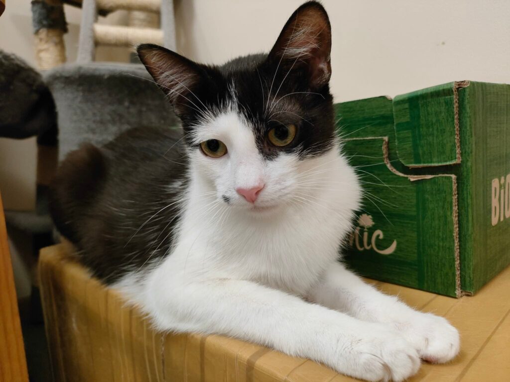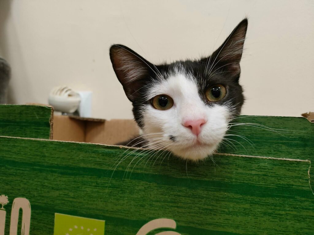 Kostek wyróżnia się pieprzykiem na pyszczku, dodaje mu to niesamowitego uroku Kostkowi szukamy domu z kocim towarzystwem lub bez – ważne, by miał kochającego człowieka, który da mu ogrom miłości.
