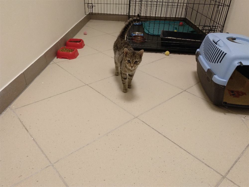 Ta cudna mała kotka przyszła z ulicy. Jest bardzo spokojna i troszę lękliwa. Przy głaskaniu głośno mruczy.