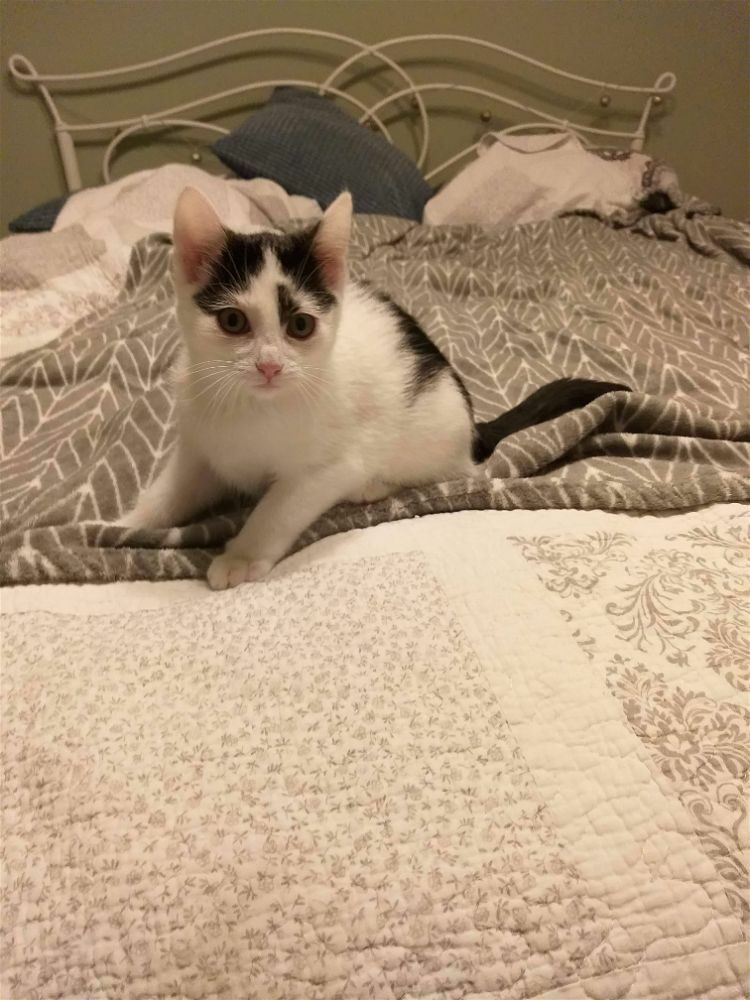 Mała kotka została porzucona w pudełku na śmietniku razem z rodzeństwem. Zabrane przez przechodnia były tak wystraszone i kiepsko zabezpieczone, że jeden kociak uciekł z samochodu, a dwójka po negocjacjach poszła do domu tymczasowego. Siostra znalazła już dom, teraz czas na Lili. Kotka na początku jest nieśmiała, ale po bliższym zapoznaniu mruczy, bawi się z innymi kotami.