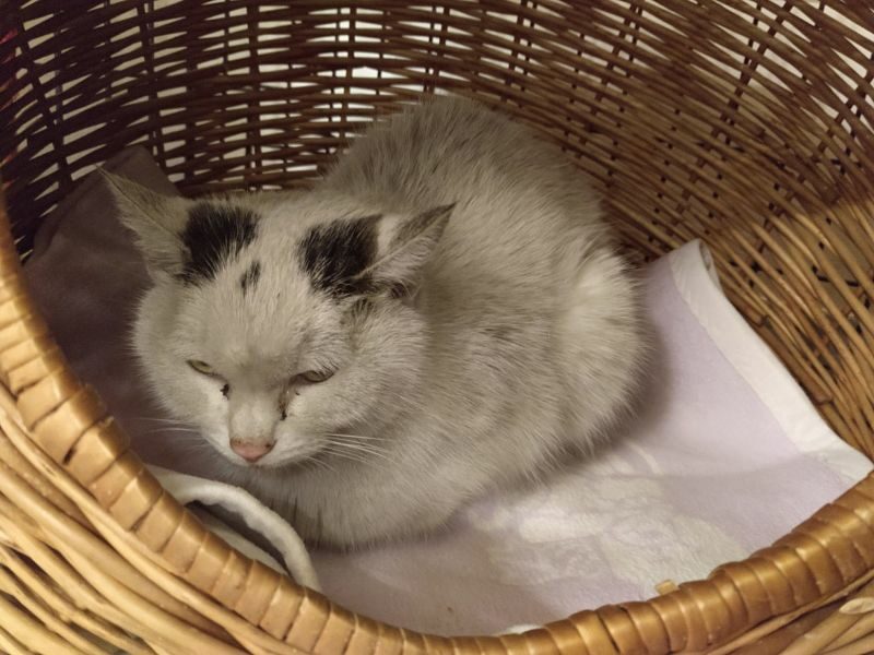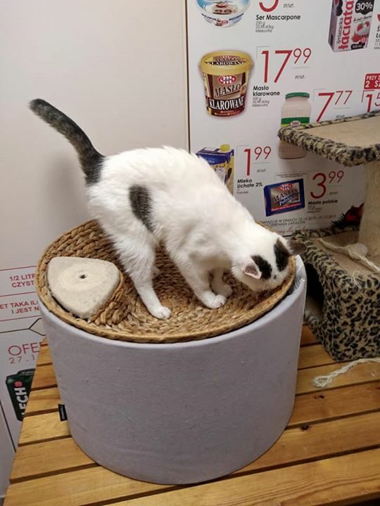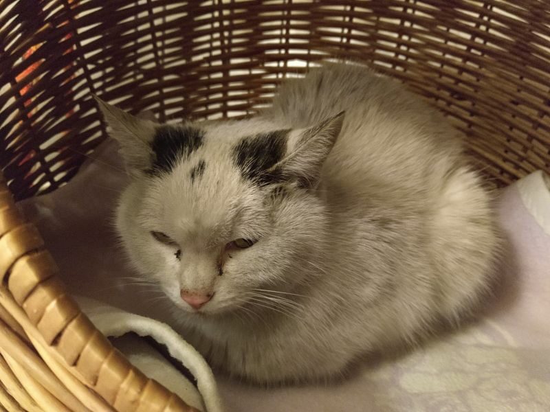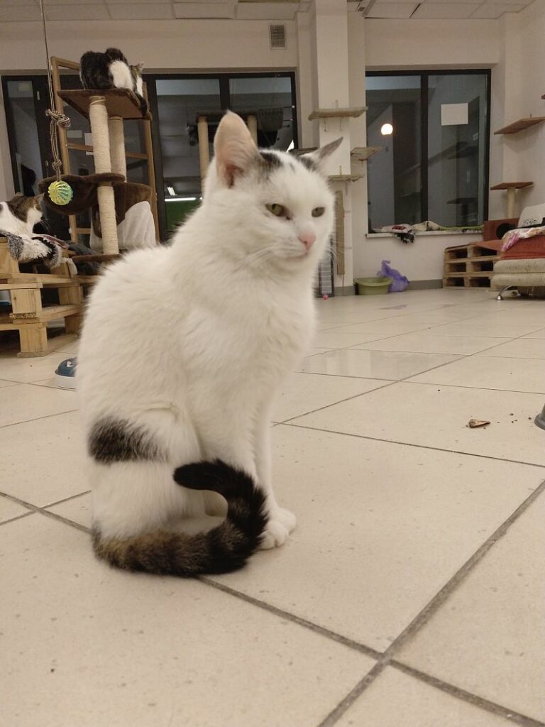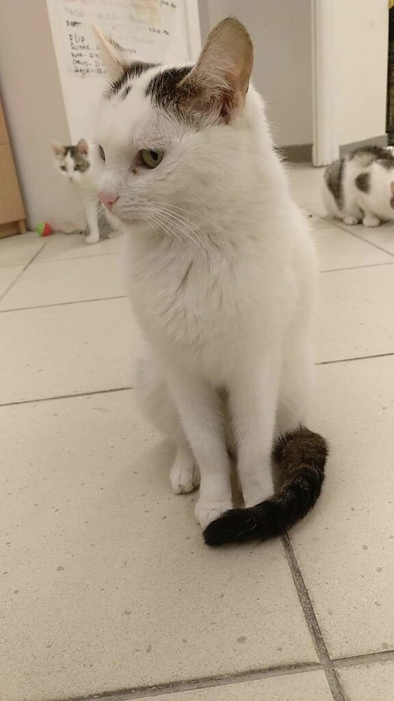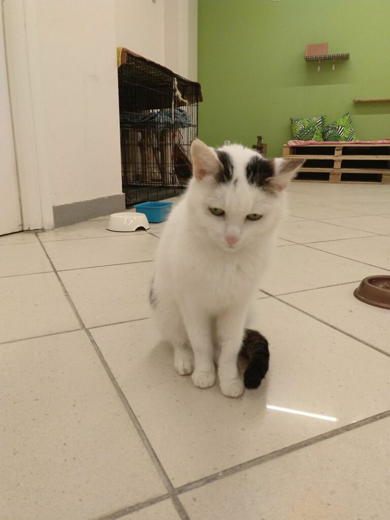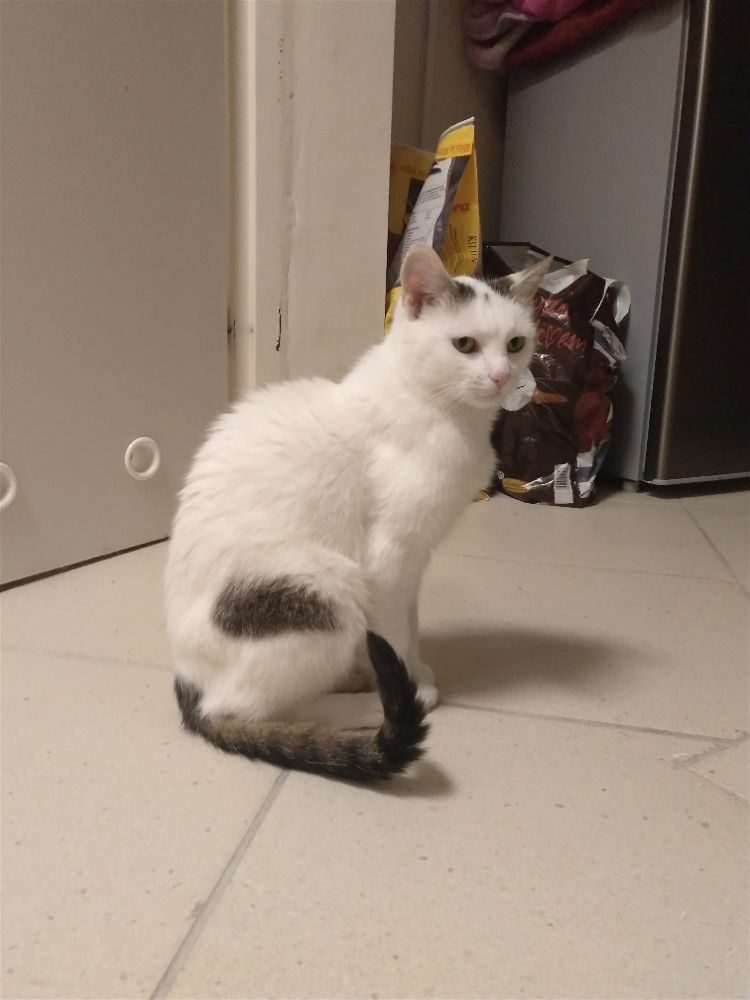 Kocurek był cały brudny, przeraźliwie chudy, a przez kilka dni po przyjęciu go do nas, wymiotował folią i innymi śmieciami, co wskazuje na to, że rozpaczliwie poszukiwał jedzenia.