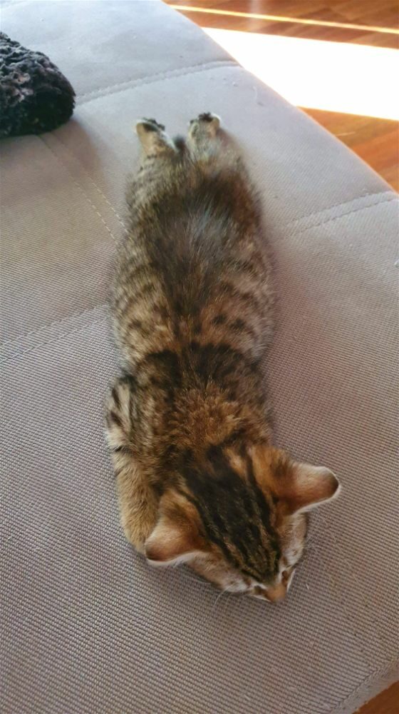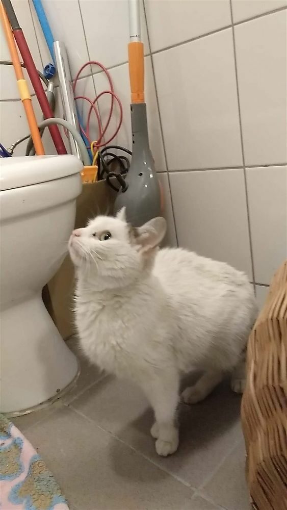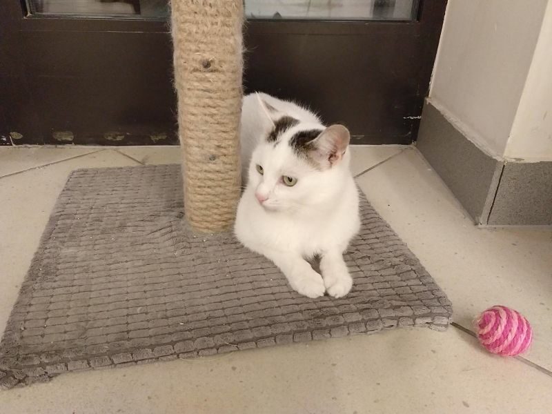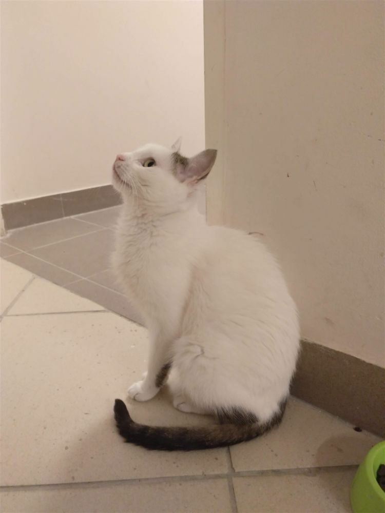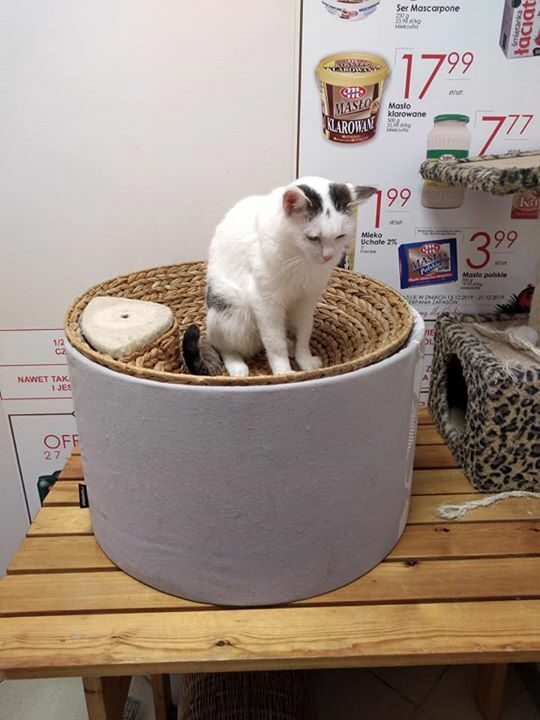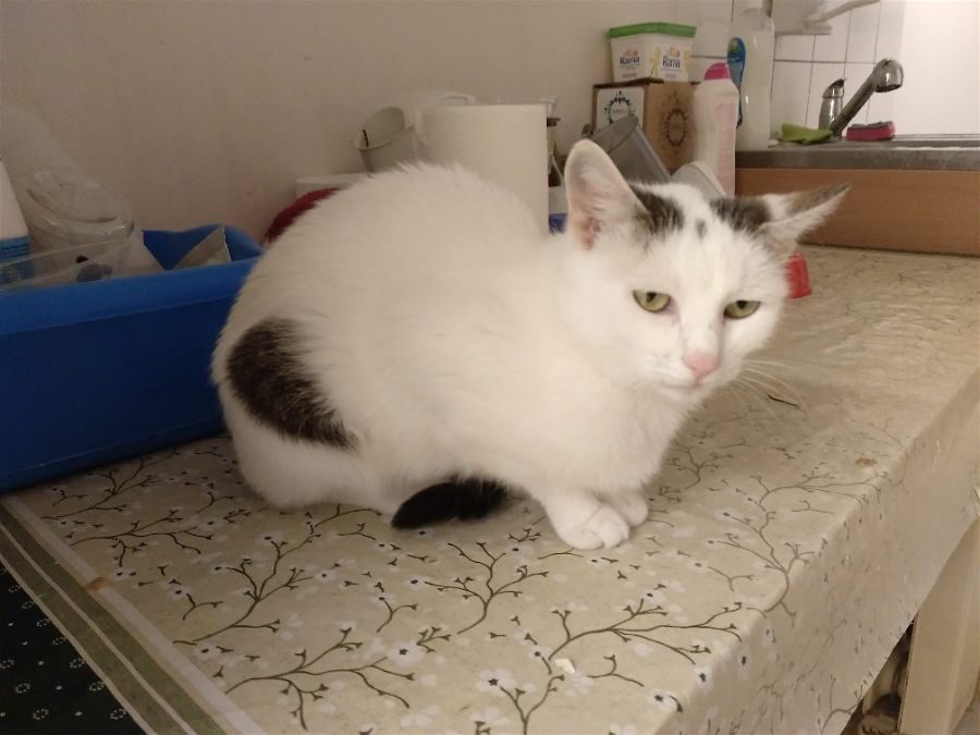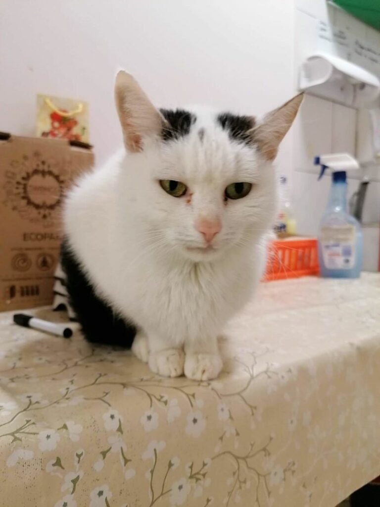 Kocurek był cały brudny, przeraźliwie chudy, a przez kilka dni po przyjęciu go do nas, wymiotował folią i innymi śmieciami, co wskazuje na to, że rozpaczliwie poszukiwał jedzenia.