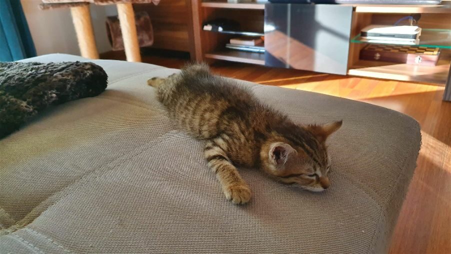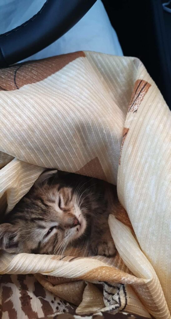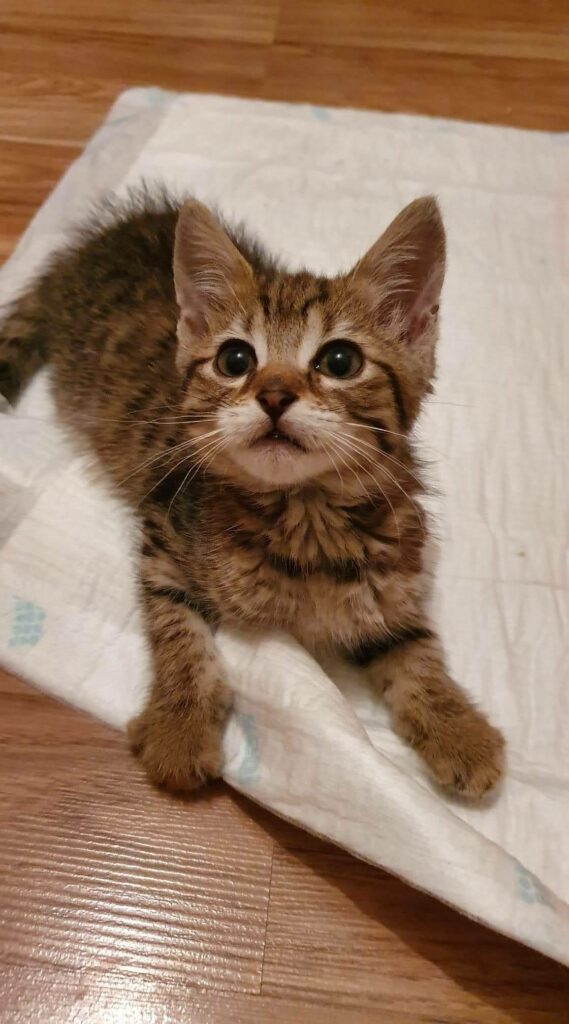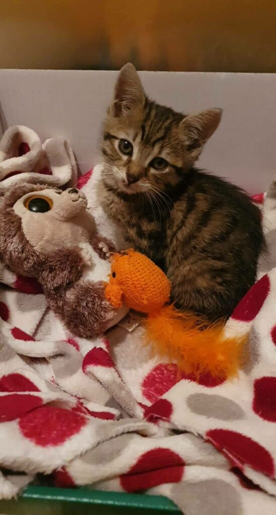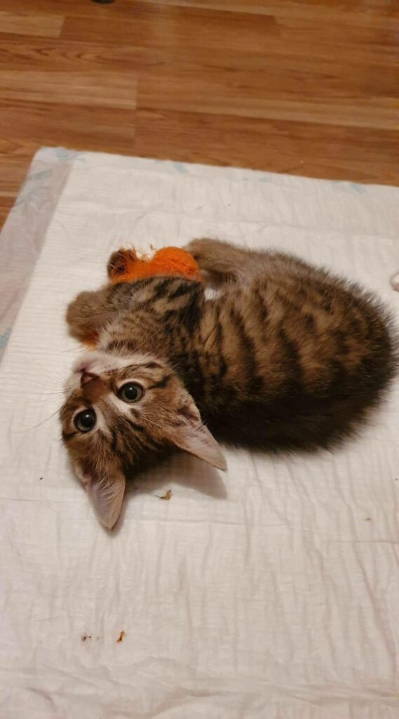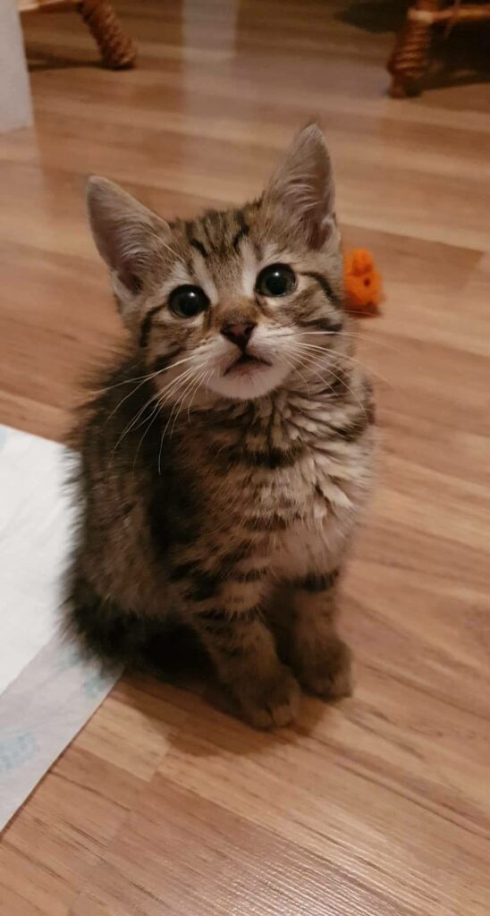 Teraz to już zupełnie inny kotek. Pita – bo tak dostała na imię, rośnie sobie zdrowo pod troskliwą opieką jednej z naszych wolontariuszek i już za kilka dni będzie gotowa do adopcji.