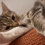 Kotka jest bardzo delikatna, uwielbia bawić się i przytulać do człowieka. Kiedy się wtuli usypia swoim mruczeniem. Nie z każdym kotem się dogaduje, więc szuka domu jako jedynaczka lub do spokojnego kota.