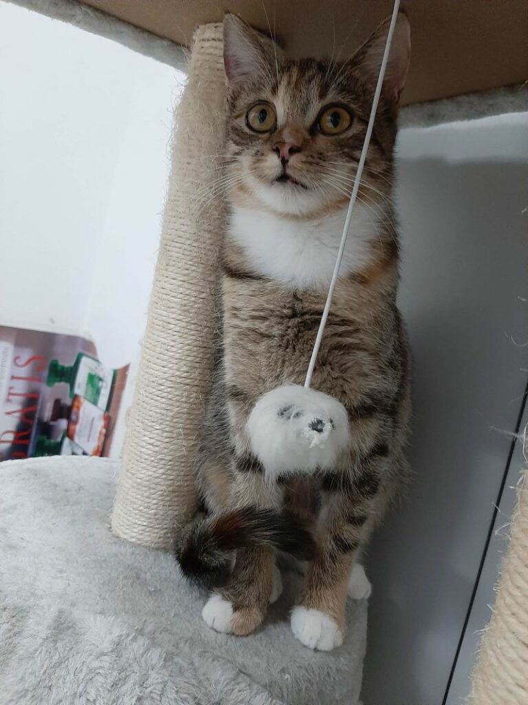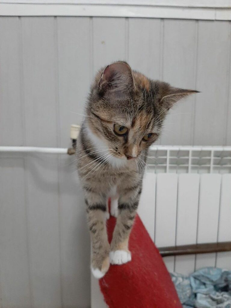 Ta śliczna kotka, trafiła do nas pewnego mroźnego wieczoru, zabrana z jednego z osiedli w Stalowej Woli. Została dostrzeżona, kiedy rozpaczliwie szukała wejścia do jednej z piwnic… zapewne szukając ciepłego miejsca. Kornelia jest bardzo przyjazną i radosną kotką, która kocha zabawy… nawet w pojedynkę. Wymagania co do zabawek ma bardzo niewygórowane, gdyż zwykle kradnie coś, co przeznaczone jest do wyrzucenia, a następnie biega z tym czymś w pyszczku, robi fikołki i kręci piruety przez długie godziny 😁