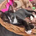Kotek trafił do nas z ranną łapką i prawdopodobnie przetrąconym kręgosłupem. Kotka ma złamany ogon i wybitą łapkę ze stawu biodrowego, została zoperowana i dochodzi do siebie. Jest bardzo przyjazna i łagodna.