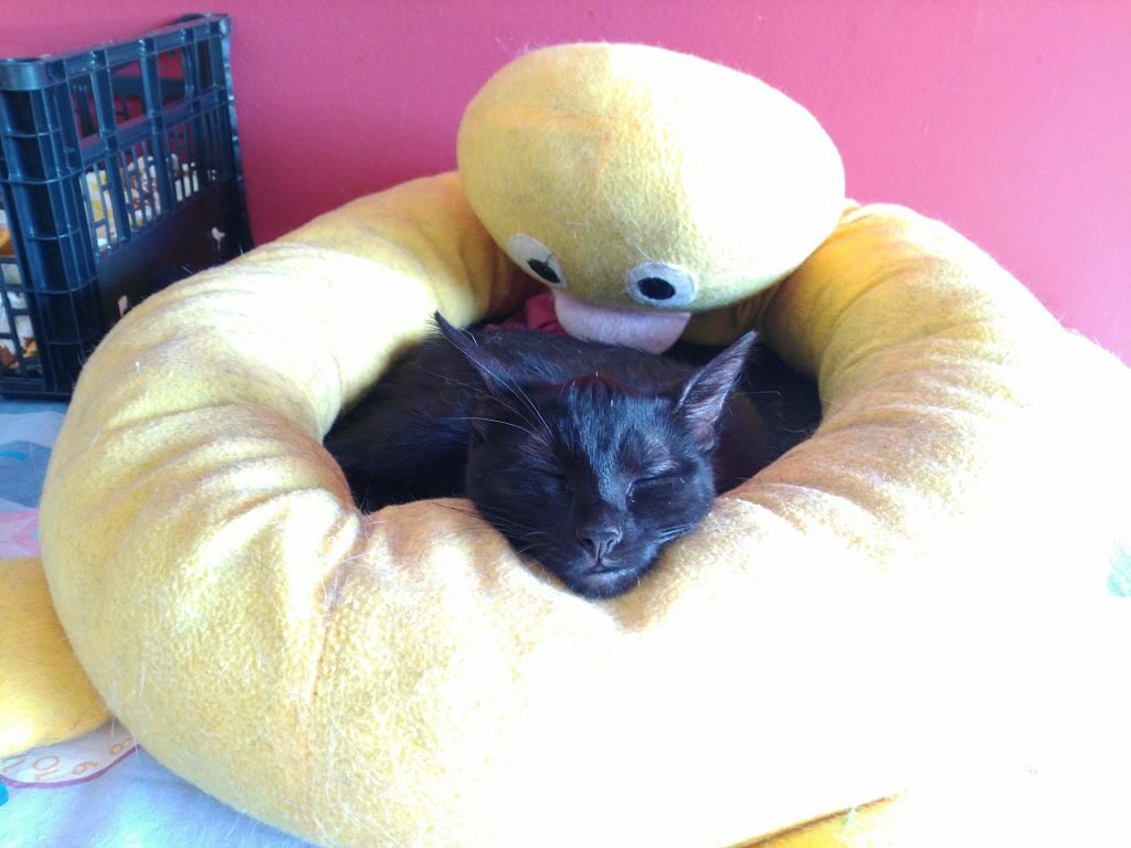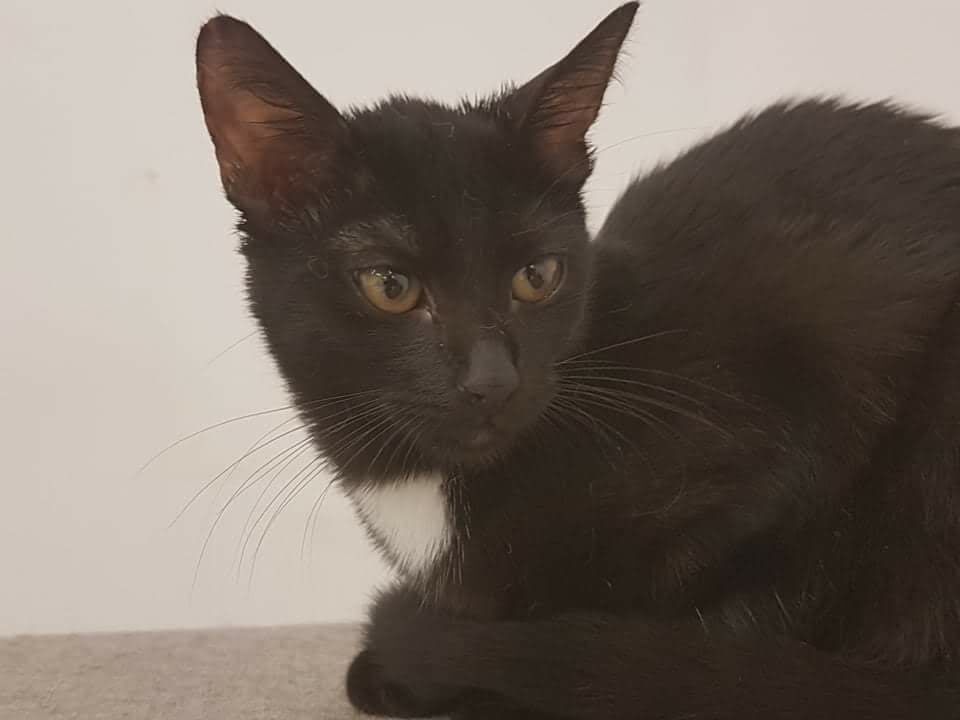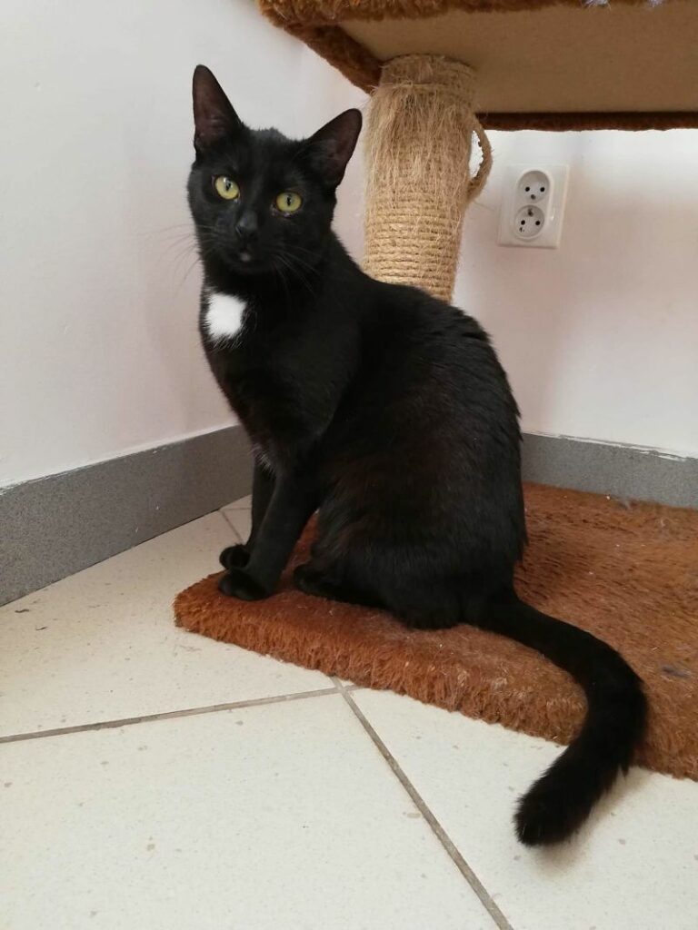 Kotka trafiła do nas jako mały kociak wraz z braciszkiem. To kocia dama, dumnie stojąca patrząca na wszystkich z góry. Gdy zobaczy sznurki czy piłki zamienia się w małego kociaka i szaleje z zabawkami na całego. Jest nieśmiała i płochliwa. Do oddania w dwupaku z Batonem.