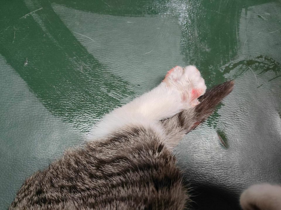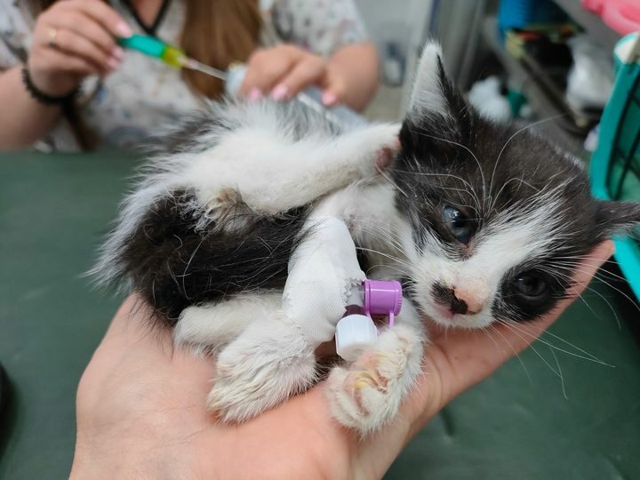 Nie chcemy nawet myśleć, jak to się stało. Nie chcemy sobie wyobrażać ile bólu musiało zaznać to kociątko zanim do nas trafiło. Ta malutka dziewczynka, żyła na działkach w Stalowej Woli i była dokarmiana przez starszego pana. Otrzymaliśmy zgłoszenie, że od kilku dni koteczka kuleje, a jej łapka jest mocno opuchnięta. Od razu kazaliśmy przywieźć ją do lecznicy w celu zbadania i udzielenia pomocy. Łapka wygląda bardzo źle. Najprawdopodobniej jest zmiażdżona – możliwe, że w wyniku pogryzienia lub utknięcia w jakiejś szczelinie. Pojawiła się już martwica, więc nie wiadomo czy uda się ją uratować…czy nie będzie konieczna amputacja. Malutka przeszła zabieg usunięcia martwicy z łapki i przy okazji, zabieg kastracji. Łapkę na szczęście udało się uratować.