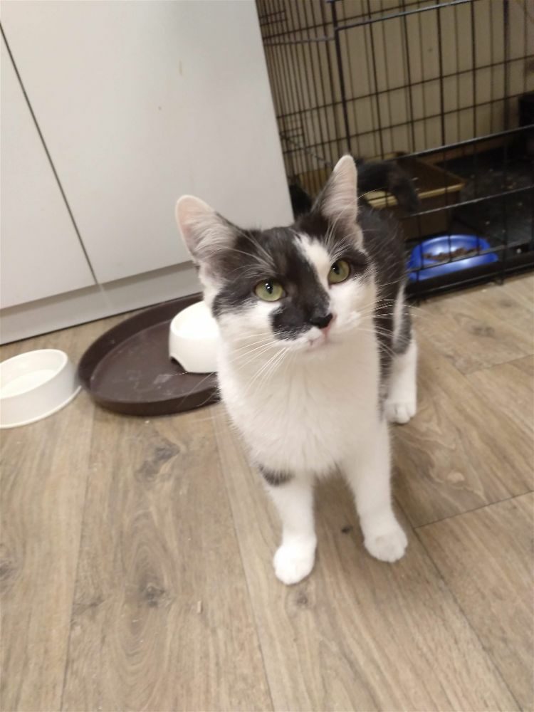 Zorro to zjawisko piękny, biało – popielaty kawaler o wspaniałym, radosnym i ciekawskim usposobieniu. Wszędzie go pełno i wszystko musi zobaczyć. Kocha zabawy wędką i surowe mięso, za którym potrafiłby doskoczyć naszego 3-metrowego sufitu 😹