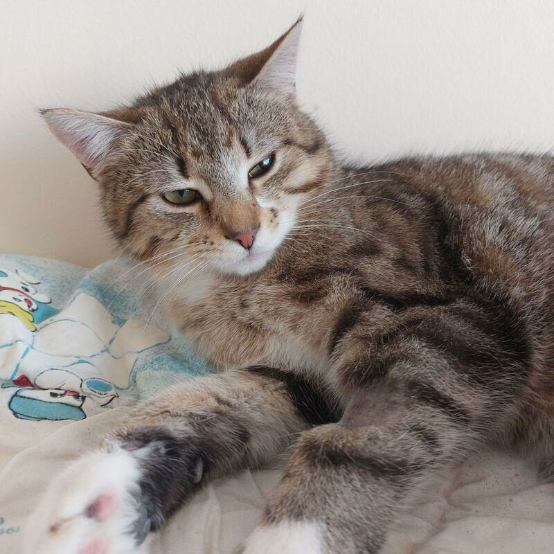 Filuś to ogromny kocur o pięknym marmurkowo – popielatym umaszczeniu, który od długiego czasu żył w ogromnym cierpieniu.