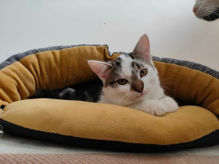 Coco to jedna najsłodszych istot, jakie widzieliśmy 🙂 Po przebytym wirusie pozostały jej problemy neurologiczne, które powodują, że czasem plączą jej się łapki, czasem upadnie, czasem musi wspiąć się na drapak dwa razy – bo za pierwszy razem spadnie 🙂