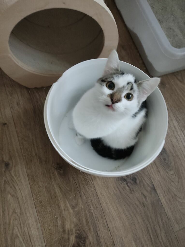 Mati to niezwykle słodki koci młodzieniec, urodzony wczesnym latem 2022. Kotek kocha zabawy i gonitwy za piłkami, po których zasypia słodko na legowisku 🙂 Jest wszędzie i nigdzie, pojawia się i znika. Kiedy go szukasz – nie ma go. Kiedy coś robisz, plącze się między nogami 🙂
