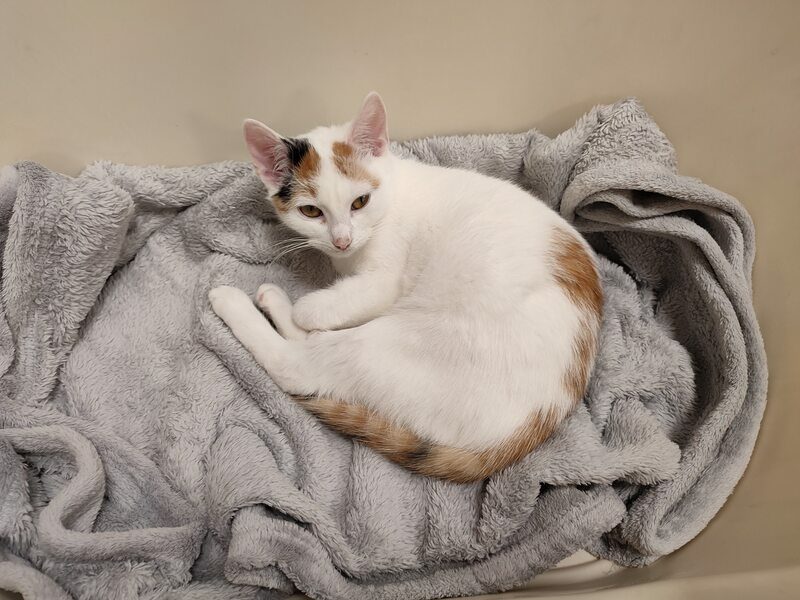 Francesca została u nas w fundacji po tym jak jej brat Simba poszedł do adopcji. Kotka należy do tych asertywnych i rezolutnych. Wszędzie jej pełno i jest wyjątkowo ciekawska. Mimo tego że przybywa w dużym stadzie, trudno ją przeoczyć. Jest szczepiona ale jeszcze nie kastrowana. Szukamy jej raczej domu z kocim towarzystwem ale jeśli w domu będzie się dużo działo to kotka odnajdzie się również jako jedynaczka.