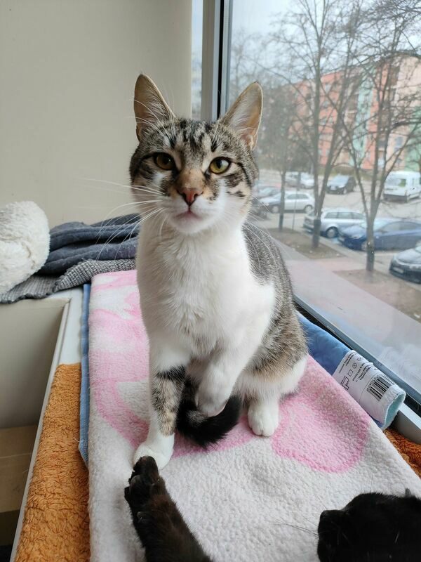 Przedstawiamy Wam cudownego kocurka Beksę. Jego imię wywodzi się z czasów, kiedy był jeszcze małym kociątkiem. Był wtedy ciągle głodny i głośnym krzykiem domagał się napełnienia miseczki. Jego charakterystyczny głosik pozostał do dzisiaj – codziennie zwraca na siebie uwagę przeciągłym miałkiem 🙂 Jest przy tym niesamowicie uroczy i wręcz trudno powstrzymać się przed wzięciem go na ręce i przytulaniem. Beksa jest kotem wszędobylskim, świetnie dogaduje się z innymi kotami i kocha zabawy z wędką i gonitwy za piłeczką.