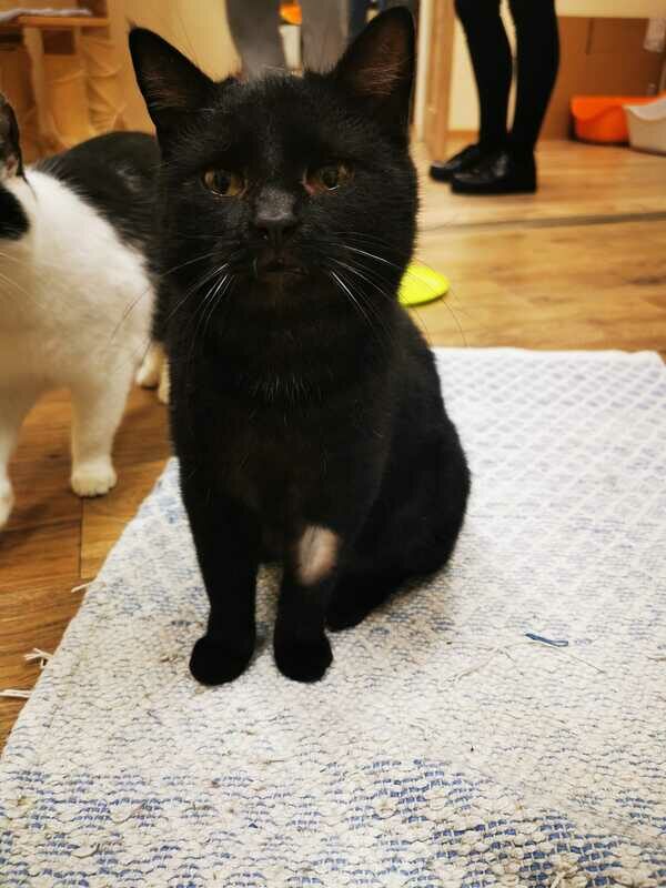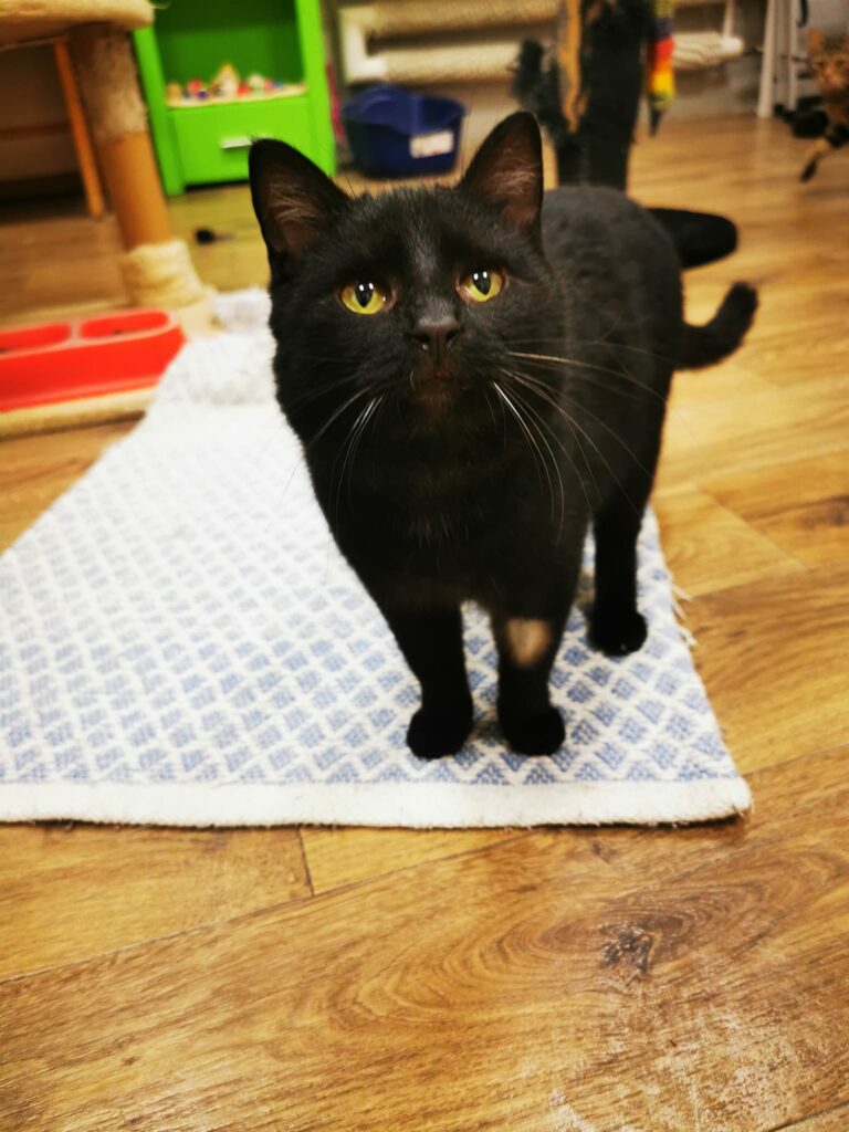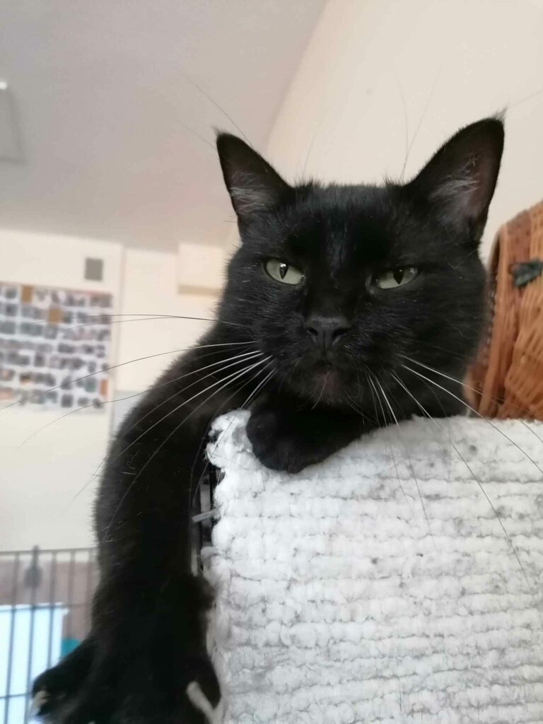 Błażej trafił do nas z ulic Sandomierza. Niestety tam nie ma pomysłu na bezdomne koty. Groziła mu ulica lub eutanazja (kiepskie wyniki biochemii). Czasem udostępniamy „kawałek podłogi” takim kocim staruszkom, żeby mogły godnie mieszkać na emeryturze.