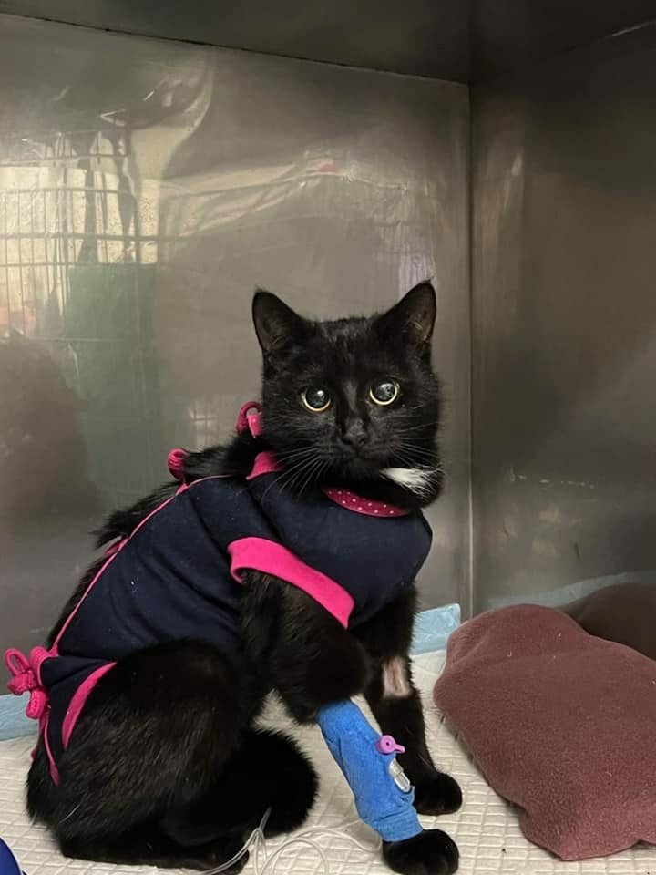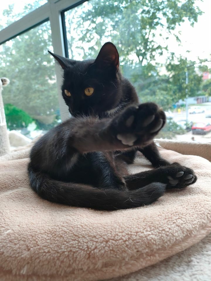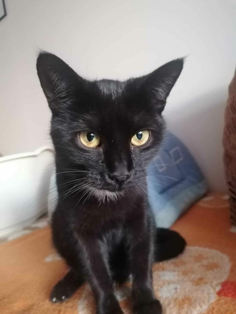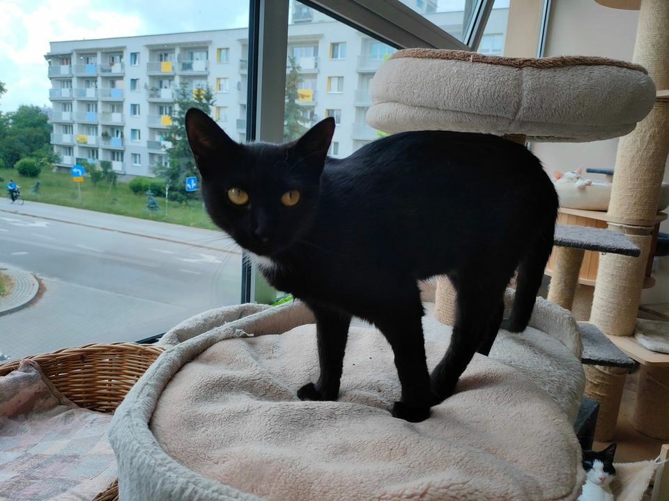 Szukała ciepła w jednej z klatek schodowych na terenie miasta. Śliczna, młodziutka czarnulka o błyszczącej sierści – a do tego wyjątkowo przyjazna i spokojna <3 Coś jednak było nie tak. Dało się zauważyć lekką duszność – która nigdy nie jest dobrym znakiem. W kolejnych dniach dostaliśmy dwie wiadomości: złą… a potem jeszcze gorszą. W pierwszym RTG, wykonanym w Stalowej Woli, widać było przepuklinę przepony. To bardzo poważny uraz, który powoduje, że narządy wewnętrzne uciskają na płuca. Jeszcze tego samego dnia, kotka znalazła się w naszej zaufanej lecznicy w Lublinie, gdzie dalsza diagnostyka pokazała, że jest to przepuklina przeponowo – osierdziowa (organy uciskają też na serce). Istnieje bezpośrednie zagrożenie życia, a kotka nie może tak funkcjonować. Konieczna jest bardzo trudna i ryzykowna operacja, a kilka dni po niej pobyt w całodobowej klinice, gdzie nad kotką będą czuwali lekarze także w nocy. Jak to powiedzieli lekarze: po takiej operacji, nie poradzi sobie sama… Dowiedzieliśmy się, że pęknięcie przepony i osierdzia było wynikiem urazu mechanicznego – najprawdopodobniej mocnego uderzenia lub kopnięcia. Jest więc duże prawdopodobieństwo, że cała nasza walka o jej życie, to walka ze skutkami ludzkiego okrucieństwa.W głowach nam się nie mieści, jak można skrzywdzić tak łagodną i cudowną istotę 🙁 Czarna jest już po operacji. Jednej z trudniejszych i bardziej ryzykownych, jakie przyszło nam wykonać w celu ratowania kociego życia. Zdecydowaliśmy się walczyć o nią, mimo iż nie mamy na to środków. Czasu nie było, gdyż lekarze ocenili jej stan, jako zagrażający życiu… a my nie mogliśmy spojrzeć w te oczka i odmówić jej pomocy… Ryzyko było tym większe, że kotka mogła umrzeć tuż po operacji z powodu niewydolności oddechowej… Przez długi czas jej płuca działały tylko w niewielkiej części, co spowodowało skurczenie się pęcherzyków płucnych. Była operowana przez wiele godzin – przez kilku bardzo dobrych specjalistów. Kotka trafiła do nas z bardzo groźną przepukliną, a szansę na jej zoperowanie z sukcesem były nikłe. Mimo tego, podjęliśmy się tego ryzyka i dziś Czarna jest z nami. Codziennie zachwyca nas swoim niesamowitym urokiem… Przychodzi się przywitać, daje buziaczki, a potem biegnie szybko pomóc kolegom w polowaniu na piłeczkę 💗 Kotka doskonale odnajduje się w stadzie, więc chcielibyśmy znaleźć jej dom, gdzie już będą inne koty. Jest przyjazna i łagodna w stosunku do ludzi i ma to zaoferowania bardzo dużo miłości dla swojego opiekuna.