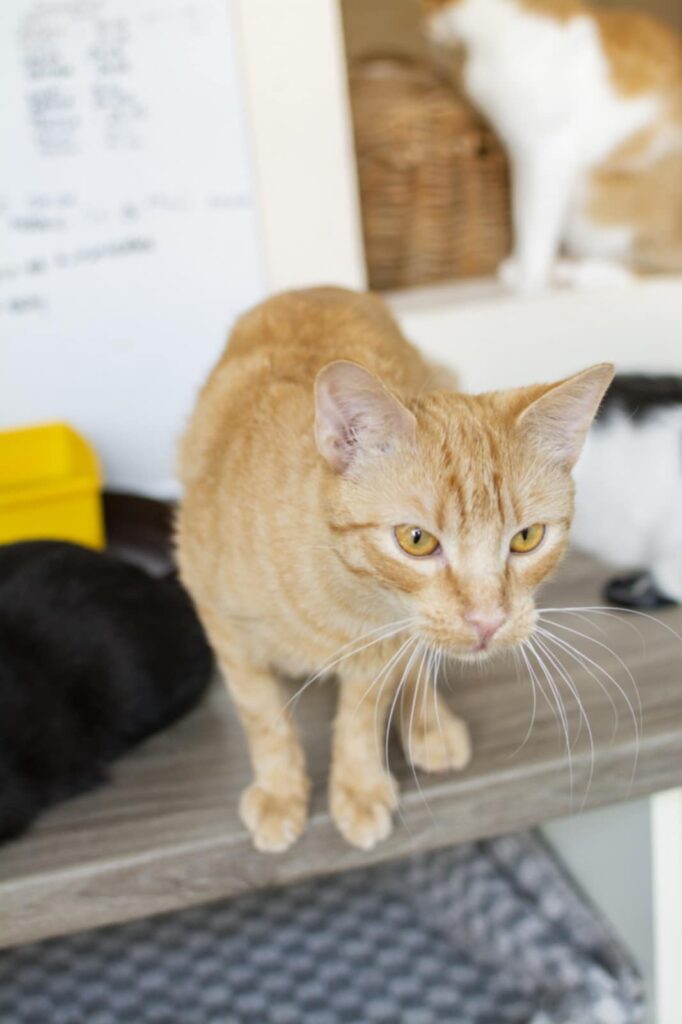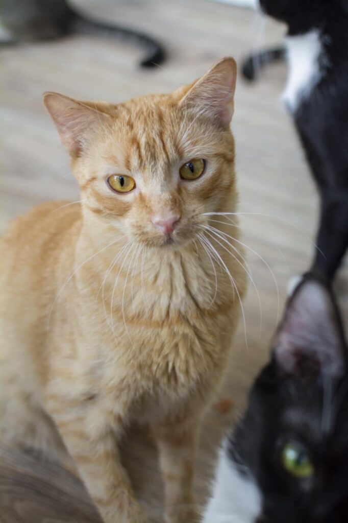 Jest kocurkiem spokojnym i łagodnym. Nie widzimy żeby szalał, wariował, czy cokolwiek niszczył. Zazwyczaj wyleguje się w jakimś wygodnym miejscu lub przechadza po fundacji 🥰 Bardzo dobrze dogaduje się z innymi kotami i w żadnym stopniu nie ma natury dominującej. Będzie idealnym towarzyszem dla spokojnego kotka.