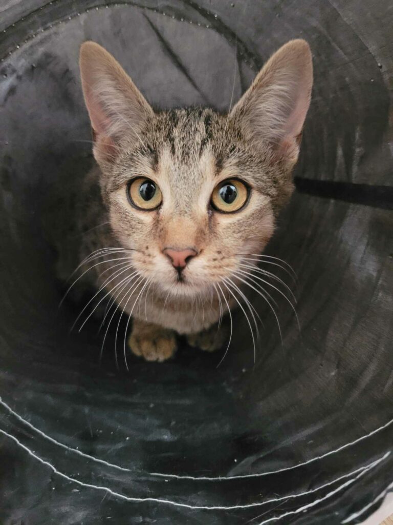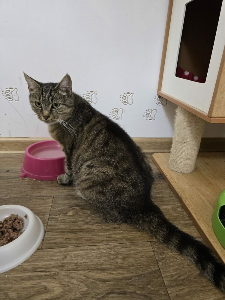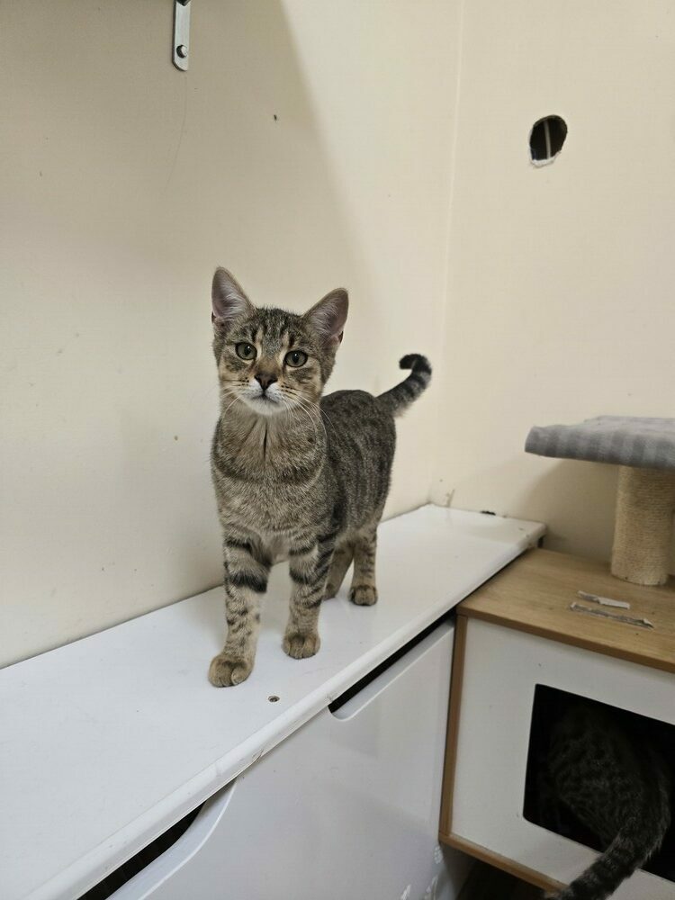Ten młodziutki kocurek, urodził się przy garażach w Stalowej Woli. Został zabrany do domu tymczasowego, razem z całą kocią rodzinką, a kiedy troszkę podrósł i uodpornił się, trafił do kociarni.