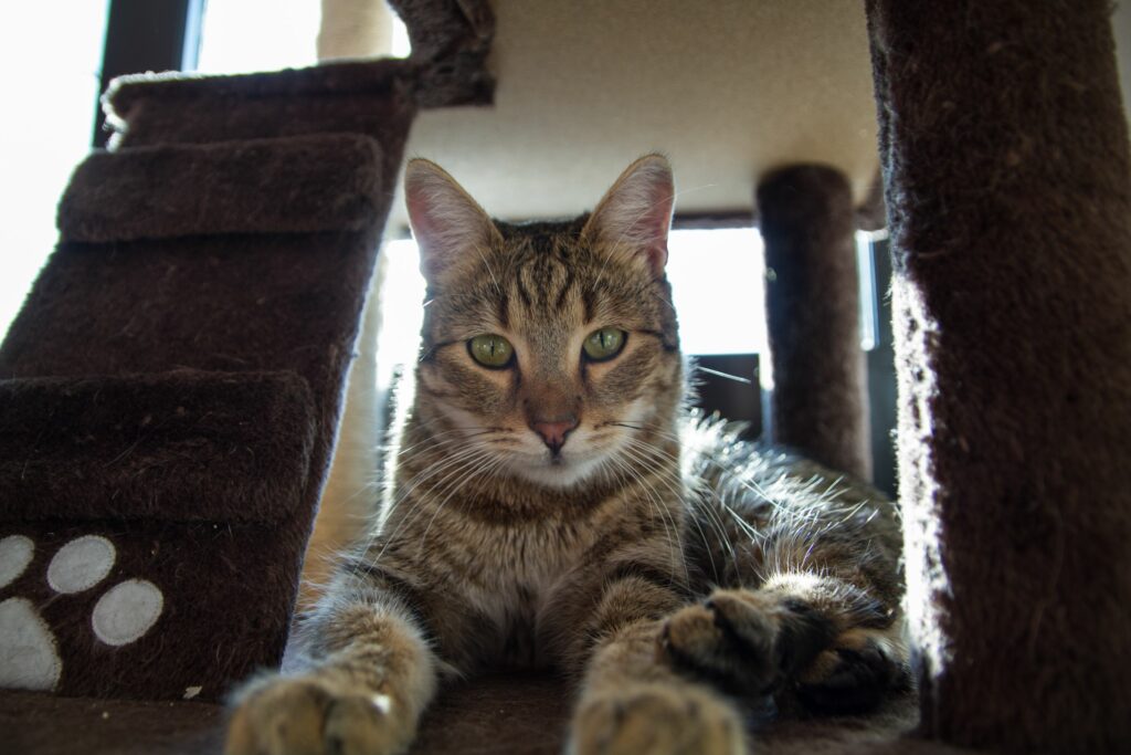 Kotka została umieszczona w klatce, gdzie spędziła 9 miesięcy. Nikt nie miał pomysłu co z nią zrobić i jak pomóc, a jej życie upływało pod znakiem bezruchu, nudy i całkowitego zrezygnowania. Do dziś zastanawiamy się, jak ta kochana istotka nie umarła z rozpaczy między lecznicowymi kratami.