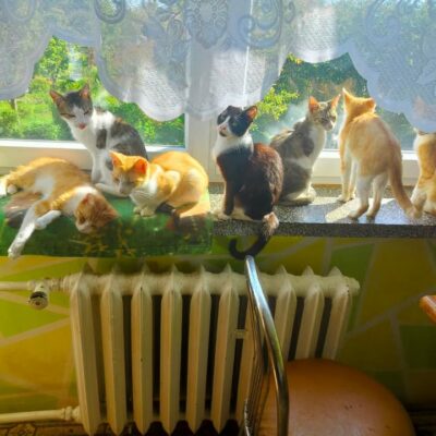 W pozostałych pokojach są koty dorosłe, zaś w kenelkach chore.