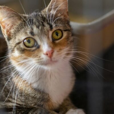 Ta urocza, kolorowa dama to Gaja. Kotka w wieku ok. roku, którą dokarmialiśmy na terenach przemysłowych w Stalowej Woli. Pojawiała się bardzo rzadko, ale od razu widać było, że nie jest takim całkowitym dzikusem i musiała się tam znaleźć w wyniku porzucenia lub zagubienia. Martwiło nas to, że pewnie wkrótce zajdzie w ciążę i urodzi młode, skazane z góry na bezdomność 🥺 Na szczęście, udało się ją złapać w porę i wysterylizować. Gaja jest przeuroczą i delikatną koteczką. Chodzi za nami i próbuję ściągnąć naszą uwagę spojrzeniem 🥰 Lubi spokój i delikatne głaskanie. Ze względu na wrażliwą naturę, nie będzie się nadawała do głośnego domu z dziećmi. Szukamy jej raczej miejsca cichego i wyrozumiałych i czułych opiekunów.