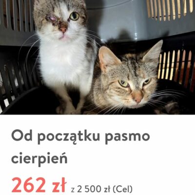 Niestety nie możemy obecnie więcej pomóc, a jedna kotka potrzebuje pilnej wizyty u weterynarza okulisty. Muszą też zostać zaszczepione. Chcieliśmy też wspomóc opiekuna dobrymi karmami, ponieważ buro – ruda kotka jest bardzo osłabiona i zdecydowanie zbyt chuda 😢