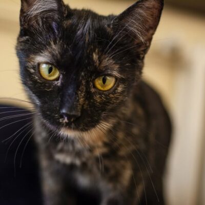 Ta koteczka od jakiegoś czasu, nie zachowuje się jak młody kociak. Przez większość czasu leży, a podczas dyżurów zamiast wspinać się nam na głowy – chowa się w zacisznych miejscach.