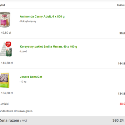 Zrobiliśmy zamówienie dla karmiciela, który mimo życia w skrajnym ubóstwie, wszelkimi sposobami próbuje wykarmić gromadę kotów. A koty jak koty…zawsze wiedzą, gdzie mieszka dobra dusza i z kilku podopiecznych, zrobiło mu się pokaźne stadko z całej wsi. W tym, zasmarkane maluszki, z wystającymi kręgosłupami 🙁