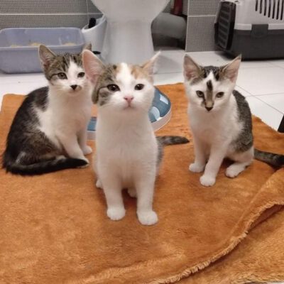 Gang słodzików czeka na domy. Potrzebujemy dla nich choćby domu tymczasowego, gdyż ich szczepienie wypada dopiero za tydzień, a one ze względów bezpieczeństwa siedzą zamknięte w łazience 🙁