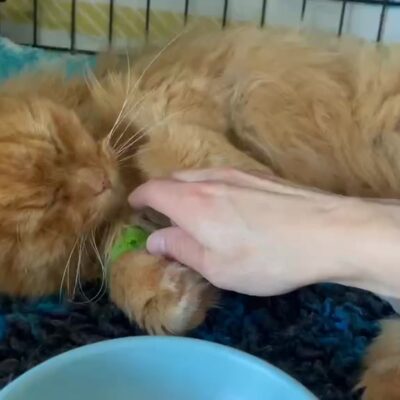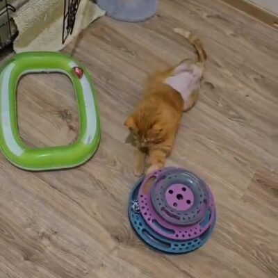 Kocurek jest już u nas w kociarni i codziennie dbamy o niego i go rehabilitujemy.