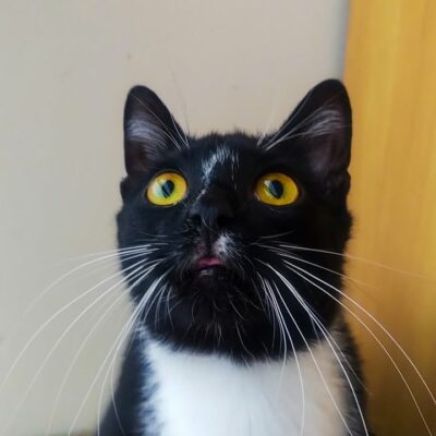 Kocurek bardzo kocha ludzi i świetnie dogaduje się z innymi kotami. Zaczepia wszystkich naokoło do zabawy i sam sobie szuka przygód.
