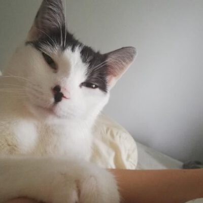 Trafiła do nas, gdyż mamy zasadę, że każdemu kotu białaczkowemu dajemy szansę.