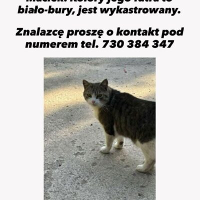 09.09.25 ul. Poniatowskiego 12 zaginął kot . Nie ufny, reaguje na „Kota” lub „Kot”. Gdyby ktoś widział proszę o kontakt pod nr 792-634-964