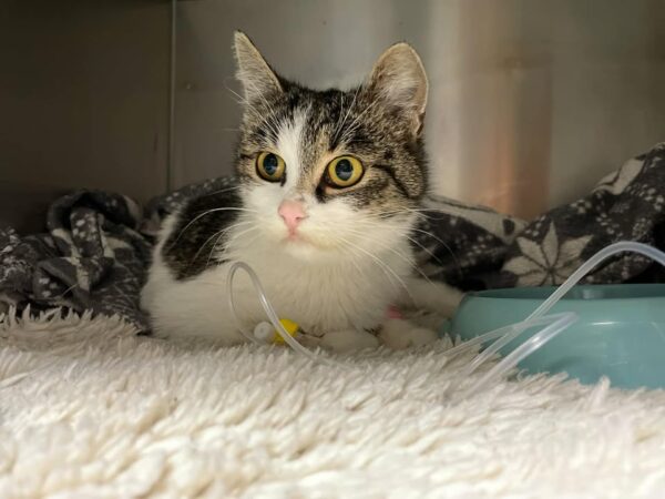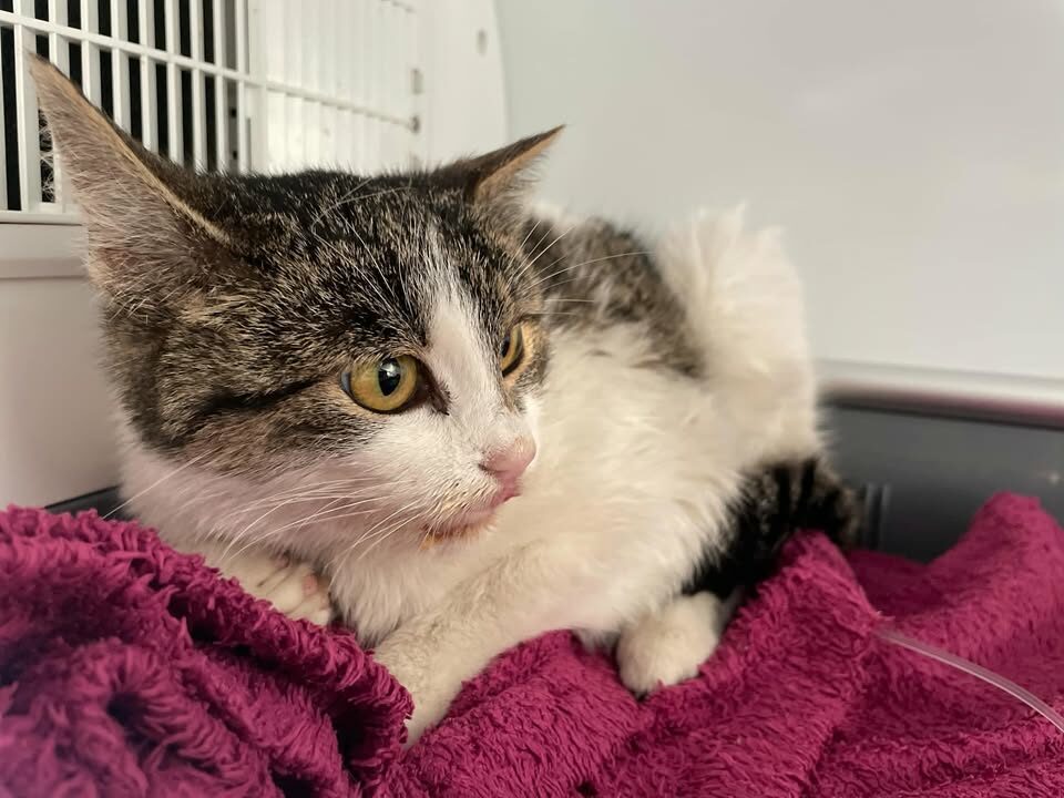 Początkowo kicia była w szoku. Ewidentnie połamana, z potłuczonymi płucami i wynikającą z tego dusznością, podejrzeniem pękniętego pęcherza…